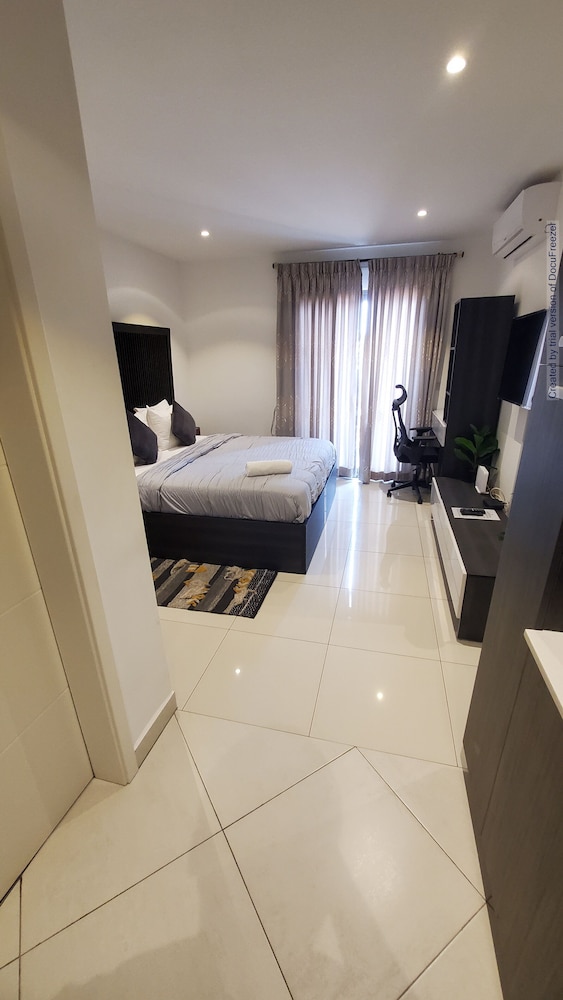 Com uma estadia The Lennox Suites by Cozy em Accra (Área Residencial do Aeroporto), ficará a 5 minuto(s) de carro de Accra Mall e a 7 minuto(s) de Embaixada dos EUA. Este aparthotel está a 8,7 km (5,4 mi) de Praia Labadi e a 1,6 km (1 mi) de Marina Mall. Os 25 quartos climatizados oferecem uma kitchenette com um frigorífico e um forno, se quiser preparar os seus pratos favoritos. As unidades contam com uma varanda. O acesso à internet com e sem fios é gratuito. As comodidades incluem ainda micro-ondas e máquinas de lavar e secar roupa. A limpeza dos quartos é efetuada diária. As distâncias são apresentadas à 0,1 milha e ao quilómetro mais próximo.