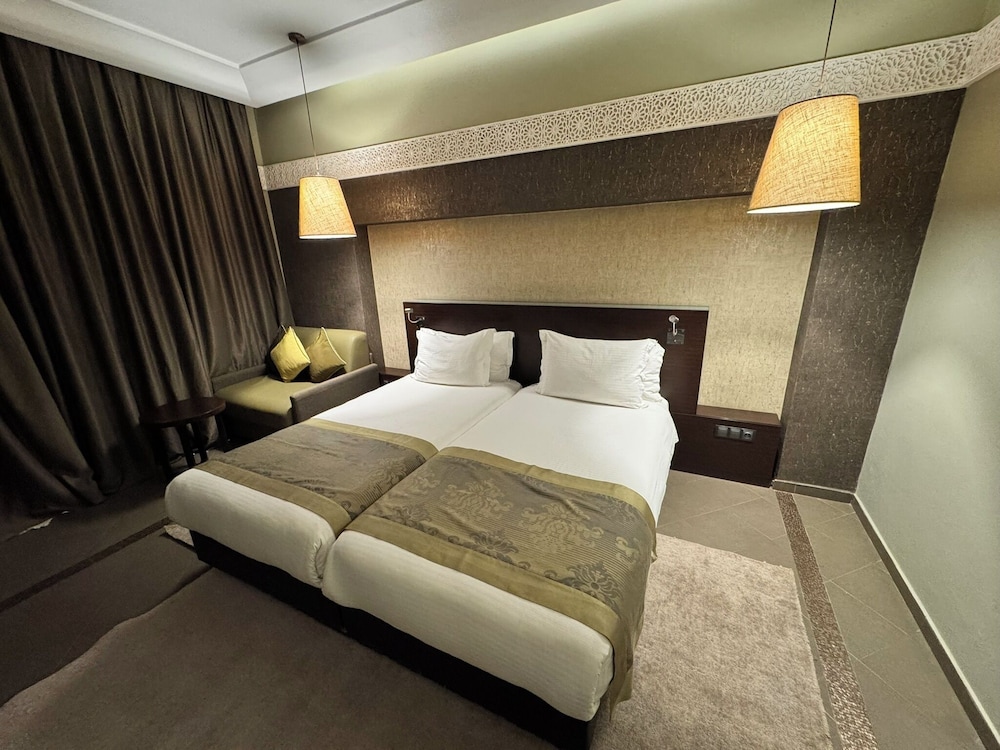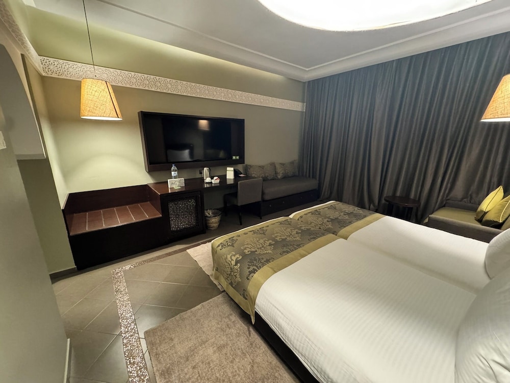 As principais comodidades incluem um business center, um serviço de limpeza a seco e uma receção aberta 24 horas. Planeia um evento em Marrakech? Este hotel dispõe de um centro de conferências e de uma sala de reuniões, com uma área total de 1500 metros quadrados. Há estacionamento grátis no local. Deleite-se com uma imersão revitalizante numa das 2 piscinas exteriores, ou experimente algo diferente, por exemplo, campos de ténis interiores ou um health club. Wi-fi grátis, serviços de concierge e serviço de baby-sitter (sobretaxa) são algumas das comodidades adicionais disponíveis neste hotel. É fácil chegar às grandes lojas com o autocarro grátis do hotel. Aproveite para fazer novos contactos na receção grátis organizada pelo hotel. Aproveite ainda para tomar um copo entre dois dedos de conversa no bar/lounge ou no bar junto à piscina. Comece as suas manhãs da melhor forma com um pequeno-almoço buffet grátis, servido diariamente entre as 6:30 e as 10:00.O alojamento irá solicitar-lhe o pagamento dos seguintes custos. Podem incluir os impostos aplicáveis: