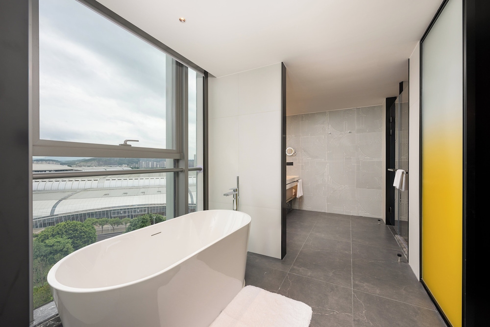 Com uma estadia Holiday Inn Fuzhou Exhibition Center by IHG em Fuzhou (Cangshan), ficará a 1 minuto(s) de carro de Centro de Exposições e de Conferências Fuzhou Strait International e a 7 minuto(s) de Wanda Plaza Rua Financeira de Fuzhou. Este hotel está a 6,7 km (4,2 mi) de Palácio de Tianwang e a 8,1 km (5 mi) de Universidade Regular de Fujian. As distâncias são apresentadas à 0,1 milha e ao quilómetro mais próximo.