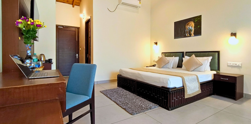 Com uma estadia Leela Vilas By Asapin Hotels em Ramnagar, ficará na serra, a 15 minutos de carro de Parque Nacional de Corbett e de Templo de Garija. Este resort está a 9,1 km (5,7 mi) de Reservatório de Ramnagar Kosi e a 9,2 km (5,7 mi) de Dhangarhi Museum. Sinta-se em casa num dos 114 quartos. Mantenha-se em contacto graças à internet sem fios. As casas de banho estão equipadas com um polibã. As comodidades incluem ainda secretárias e áreas de estar separadas. A limpeza dos quartos é efetuada Limpeza dos quartos a pedido. As distâncias são apresentadas à 0,1 milha e ao quilómetro mais próximo.