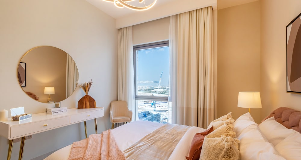 Com uma estadia este apartamento em Dubai (Porto do Dubai Creek), ficará a 15 minutos de carro de Dubai Creek e de Shopping Center de Dubai. Este apartamento está a 11,8 km (7,4 mi) de Burj Khalifa e a 13,7 km (8,5 mi) de Dubai World Trade Centre. Este complexo de apartamentos dispõe de um televisor de ecrã plano. O acesso à internet sem fios permite-lhe estar sempre contactável. As comodidades incluem uma máquina de lavar roupa e um ferro/tábua de engomar. As distâncias são apresentadas à 0,1 milha e ao quilómetro mais próximo.
