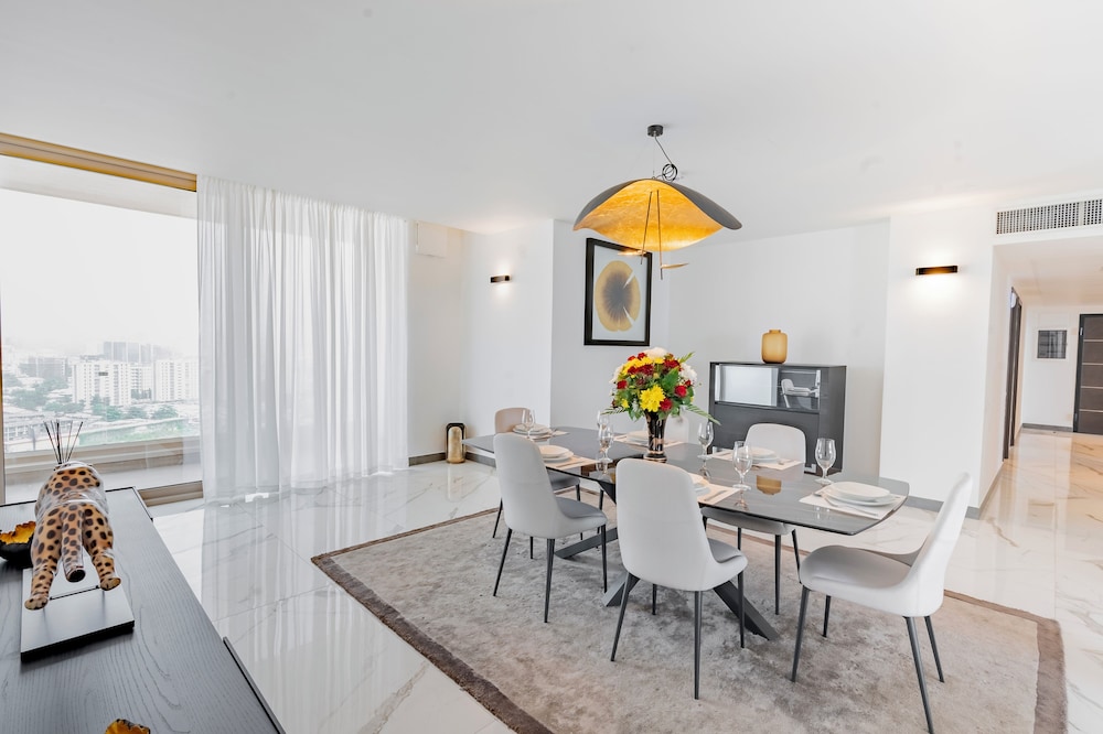 As principais comodidades incluem uma receção aberta 24 horas, armazenamento de bagagem e uma lavandaria. Há estacionamento grátis no local. Participe nas várias atividades recreativas do local, incluindo uma piscina exterior, ou aprecie soberbas vistas a partir da açoteia. As facilidades adicionais incluem serviços de concierge, um televisor no espaço comum e nadadores-salvadores no local. Termine o dia com uma bebida refrescante no bar junto à piscina. Comece as suas manhãs da melhor forma com um pequeno-almoço buffet grátis, servido diariamente entre as 7:30 e as 11:30.Mapa de Heliconia Park Luxury Apartments &Suites