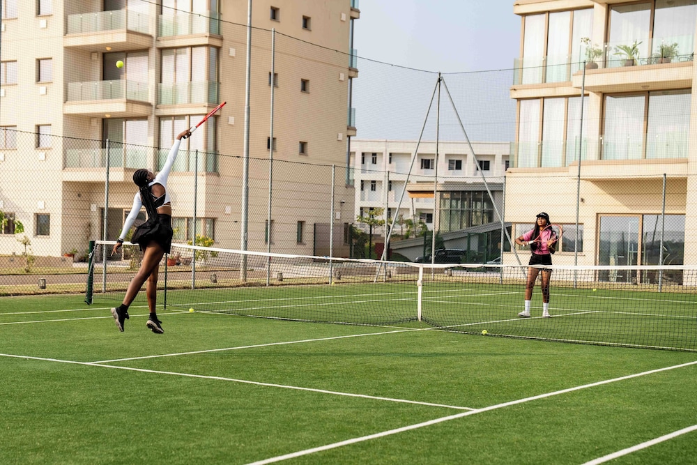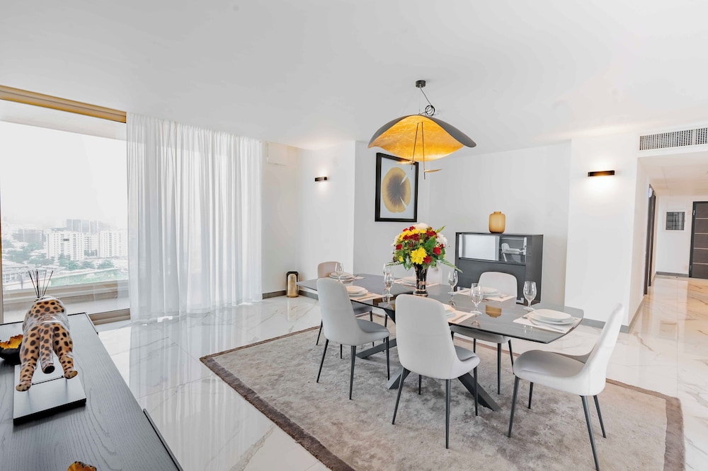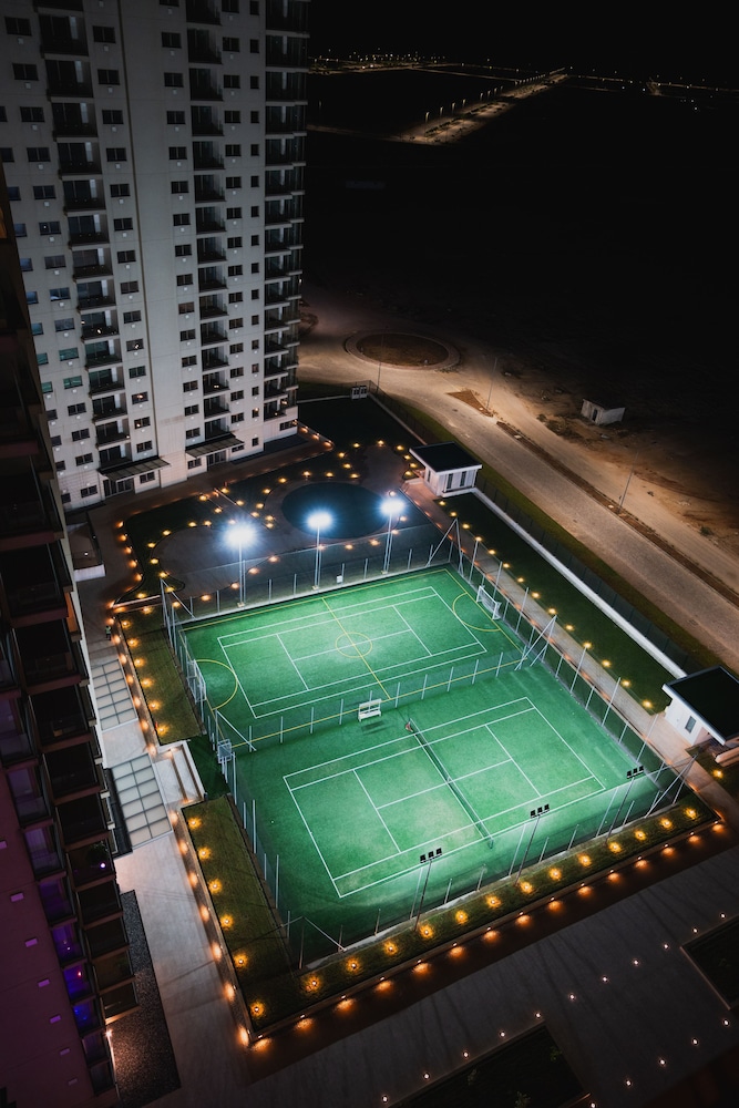 Com uma estadia Heliconia Park Luxury Apartments &Suites em Lagos (Eko Atlantic), ficará a 5 minutos de carro de Eko Gym and Spa e de Silverbird Galleria. Este aparthotel de luxo está a 2,4 km (1,5 mi) de Terra Kulture e a 2,7 km (1,7 mi) de Praia de Kuramo. Os 105 quartos contam com uma cozinha equipada com um frigorífico/congelador grande e um forno, se quiser preparar aquele prato especial. As camas têm colchões viscoelástico, edredões de penas e roupa de alta qualidade. As unidades contam com uma varanda. Ao final do dia, assista a uma seleção de canais digitais no seu Smart TV de 42 polegadas. A internet sem fios permite-lhe estar sempre contactável. As distâncias são apresentadas à 0,1 milha e ao quilómetro mais próximo.