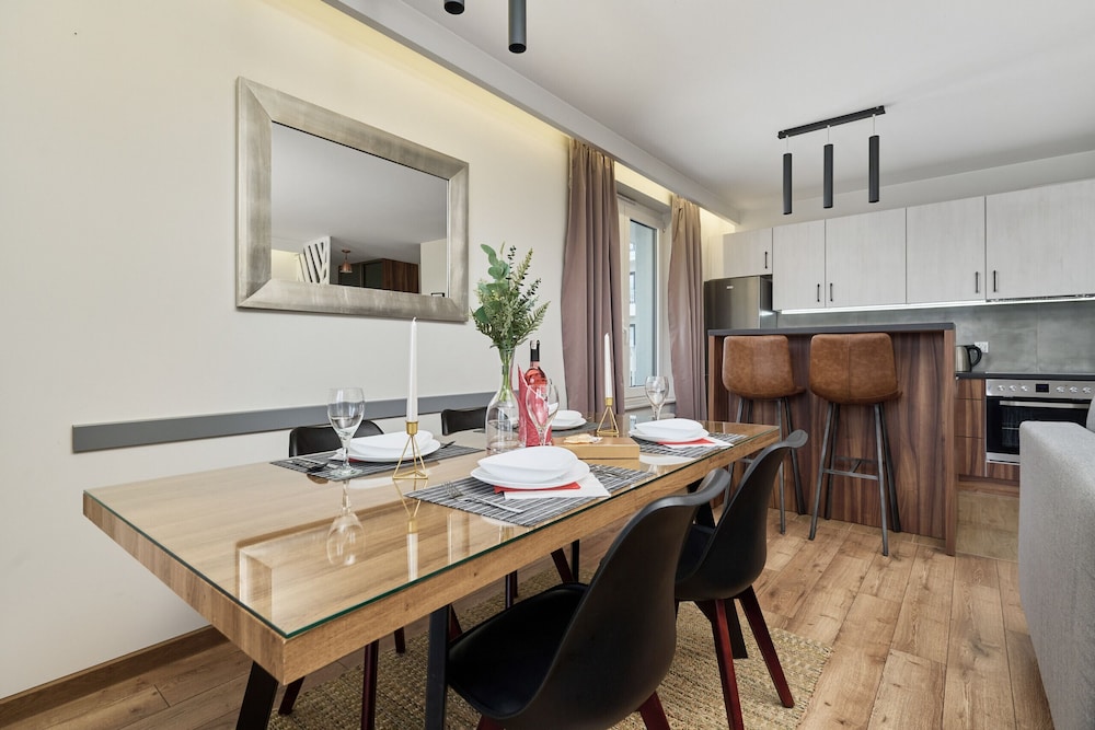 Com uma estadia Tawryczewskiego Apartments by Renters em Wroclaw (Fabryczna), ficará a 15 minutos de carro de Praça do Mercado de Wroclaw e de Estádio Municipal. Este apartamento está a 2,2 km (1,4 mi) de Estádio Municipal de Breslávia e a 2,4 km (1,5 mi) de Pista de Kart Le Mans. Os 2 quartos contam com uma cozinha, se quiser preparar aquele prato especial. As comodidades incluem ainda secretárias e chaleiras elétricas. As distâncias são apresentadas à 0,1 milha e ao quilómetro mais próximo.