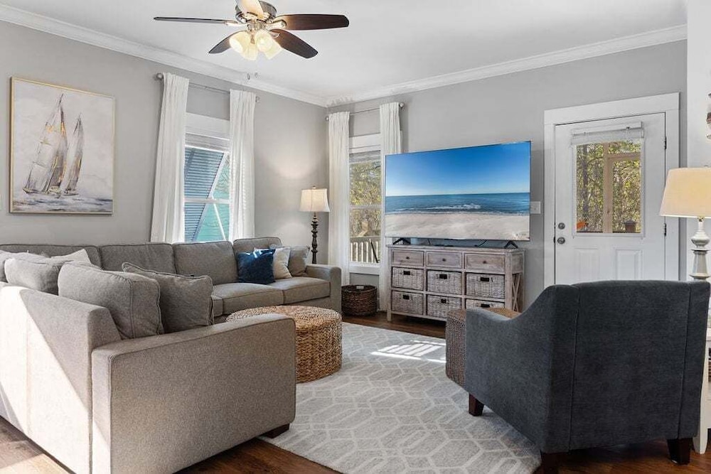 Com uma estadia esta casa de campo em Gulf Shores (Altos do Golfo), ficará a 15 minutos de carro de Fort Morgan e de Bon Secour Bay. Esta casa de campo de golfe está a 28,9 km (18 mi) de Gulf Shores Beach e a 0,7 km (0,4 mi) de Refúgio Nacional da Visa Selvagem de Bon Secour. Sinta-se em casa nesta casa de campo com ar condicionado, cozinha, um frigorífico e um forno. Para preencher os seus serões, tem à sua disposição uma Smart TV com canais por cabo, além de internet sem fios, para estar sempre contactável. As comodidades incluem um micro-ondas e uma cafeteira/bule. As distâncias são apresentadas à 0,1 milha e ao quilómetro mais próximo.