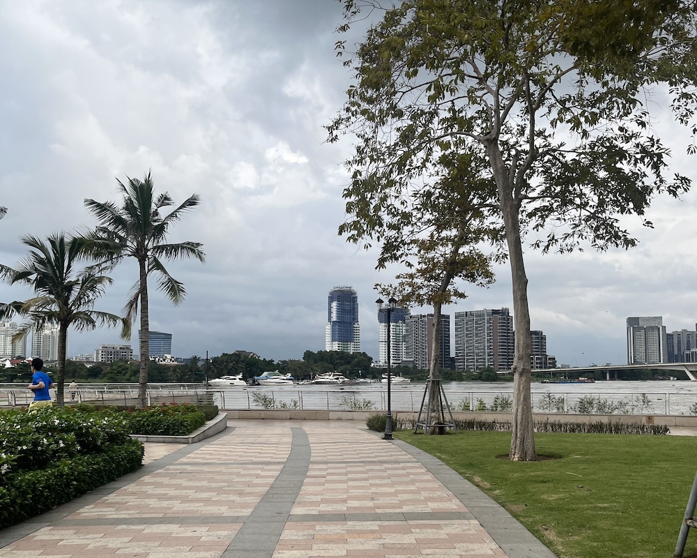Em Ho Chi Minh City (Binh Thanh), An Home - Vinhomes Central Park ficará a 15 minutos a pé de Marco 81 e de Rio Saigão. Este aparthotel de golfe está a 5 km (3,1 mi) de Mercado de Ben Thanh e a 5,8 km (3,6 mi) de Rua Pedonal de Bùi Viện. Os 10 quartos contam com uma cozinha equipada com um frigorífico/congelador grande e uma placa de cozinha, se quiser preparar aquele prato especial. Mantenha-se em contacto graças à internet sem fios. As comodidades incluem ainda secretárias e áreas de estar separadas. A limpeza dos quartos é efetuada Limpeza dos quartos a pedido. As distâncias são apresentadas à 0,1 milha e ao quilómetro mais próximo.