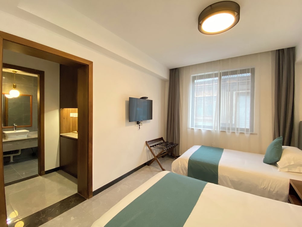 Com uma estadia Lin an Hot Spring Story Family Homestay em Hangzhou, ficará a 20 km (12,4 mi) de Pico Fresco de Hangzhou e a 32 km (19,9 mi) de Caverna Ruijing. Este hotel para famílias está a 34,9 km (21,7 mi) de O Grand Canyon no Oeste de Zhejiang e a 41,7 km (25,9 mi) de Pavilhão Memorial da Palestra de Zhou Enlai. Sinta-se em casa num dos 18 quartos com ar condicionado e um televisor LCD. O leque de entretenimento ao seu dispor inclui uma seleção de canais por cabo e colunas inteligentes. Ligue-se à internet sem fios para estar sempre conectado. As casas de banho privativas têm artigos de higiene exclusivos e secadores de cabelo. As comodidades incluem ainda cafeteiras/bules e água engarrafada grátis. A limpeza dos quartos é efetuada diária. As distâncias são apresentadas à 0,1 milha e ao quilómetro mais próximo.