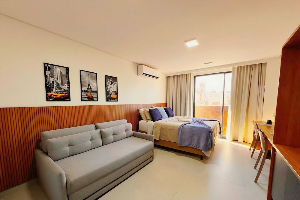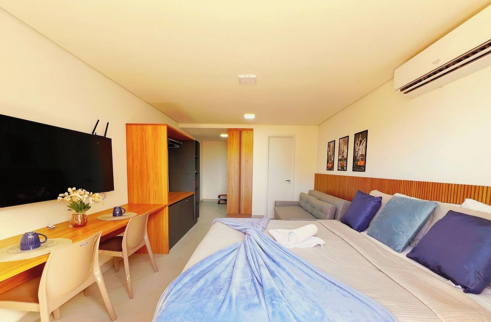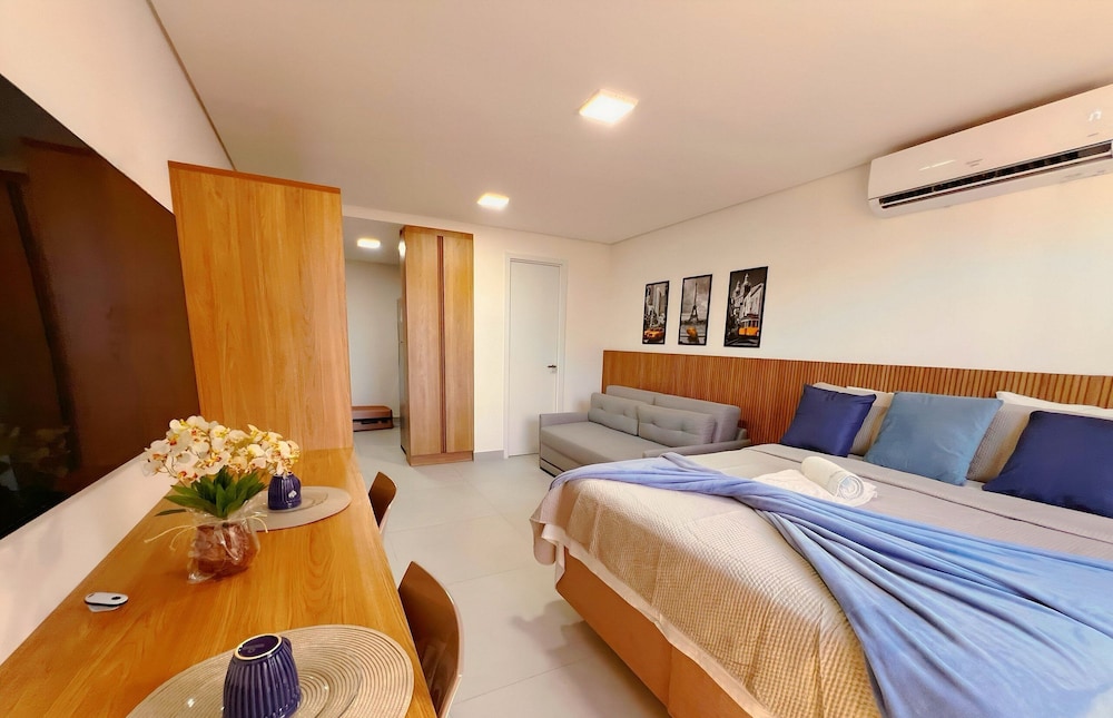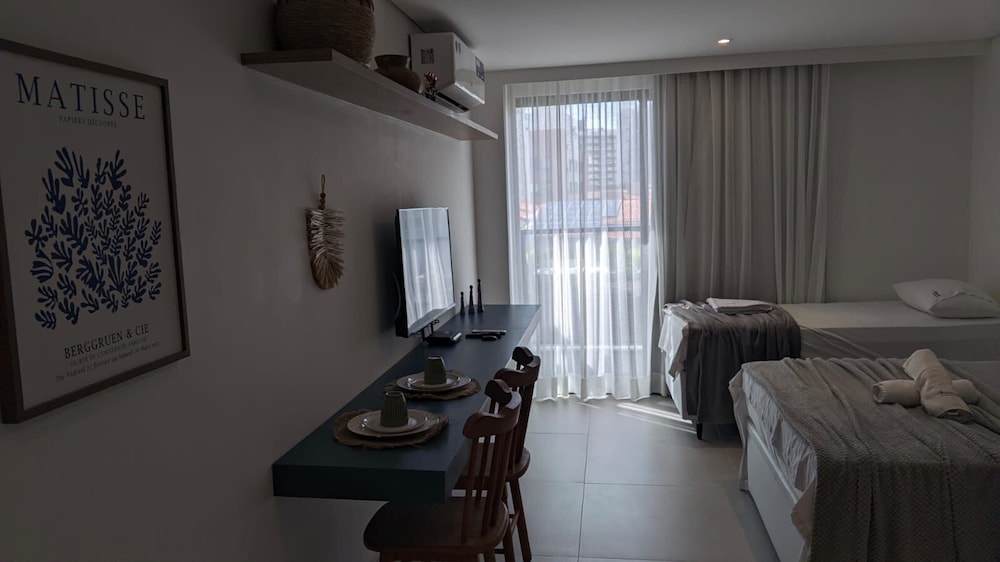 Com uma estadia este apartamento em João Pessoa (Jardim Oceania), ficará a 15 minutos de carro de Praia de Tambaú e de Centro Comercial Manaira Shopping. Este apartamento está a 2,1 km (1,3 mi) de MAG Shopping e a 2,8 km (1,7 mi) de Praia do Bessa. Sinta-se em casa neste apartamento com decoração personalizada e kitchenette. Para preencher os seus serões, tem à sua disposição uma Smart TV de 42 polegadas com canais digitais, além de internet sem fios, para estar sempre contactável. As comodidades incluem um micro-ondas e uma cafeteira/bule. As distâncias são apresentadas à 0,1 milha e ao quilómetro mais próximo.