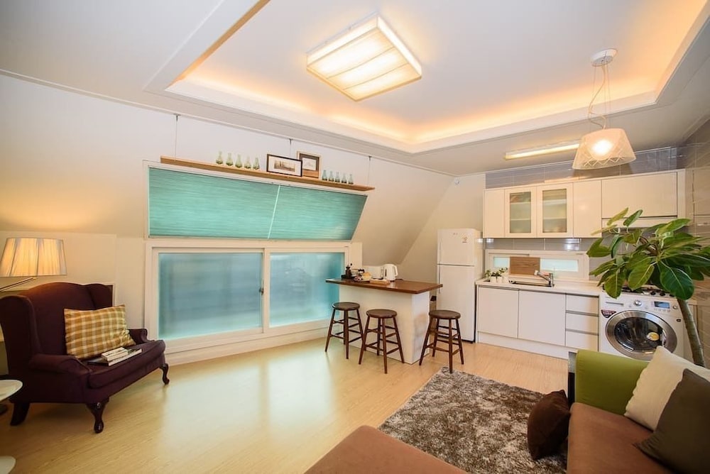 Com uma estadia Stay Young em Seul (Jongno-gu), ficará a 5 minutos de carro de Palácio Gyeongbokgung e de Mercado de Namdaemun. Esta residencial está a 3,5 km (2,2 mi) de Rua de Myeongdong e a 13,8 km (8,6 mi) de Starfield COEX Mall. Sinta-se em casa num dos 2 quartos com um televisor de ecrã plano. O acesso à internet sem fios permite-lhe estar sempre contactável. Ao final do dia, assista a uma seleção de canais por cabo. As distâncias são apresentadas à 0,1 milha e ao quilómetro mais próximo.