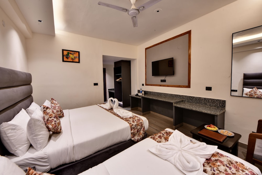 As principais comodidades incluem um serviço de limpeza a seco, uma receção aberta 24 horas e assistência multilingue. Há estacionamento com motorista grátis no local. Algumas das comodidades e serviços em destaque incluem Wi-fi grátis, um televisor no espaço comum e apoio para excursões/compra de bilhetes. O hotel serve pequenos-almoços buffet diariamente entre as 7:30 e as 10:00 mediante uma sobretaxa.- Tarifa de pequeno-almoço buffet: 250 INR por adulto e 200 INR por criança (valores aproximados)