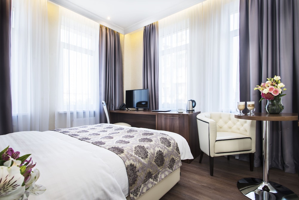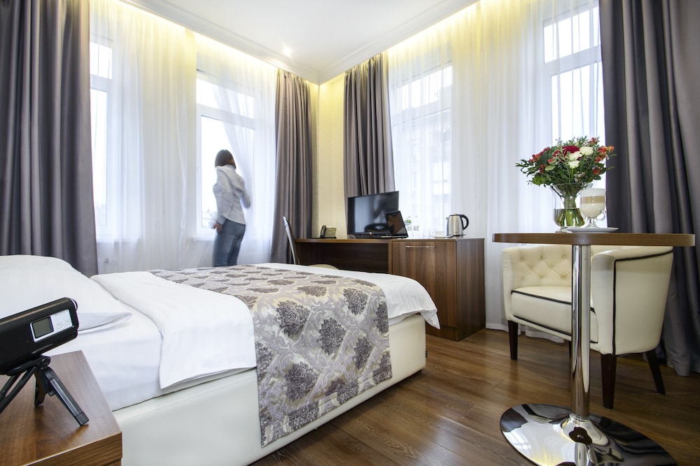 Uma estadia BonApart Hotel coloca-o no coração de Kiev, a 5 minutos de carro de Monumento aos Fundadores de Kiev e de Palácio Nacional das Artes da Ucrânia. Este hotel está a 3,5 km (2,2 mi) de Museu Maria Zankovetska e a 3,5 km (2,2 mi) de Centro Comercial Ocean Plaza. Os 40 quartos climatizados oferecem uma kitchenette com um frigorífico e uma placa de cozinha, se quiser preparar os seus pratos favoritos. Mantenha-se em contacto com o acesso gratuito à internet com fios e ao wi-fi. Ao final do dia, assista a uma seleção de canais digitais no televisor LED. As comodidades incluem ainda cofres e secretárias, além de telefone com chamadas locais grátis. As distâncias são apresentadas à 0,1 milha e ao quilómetro mais próximo.