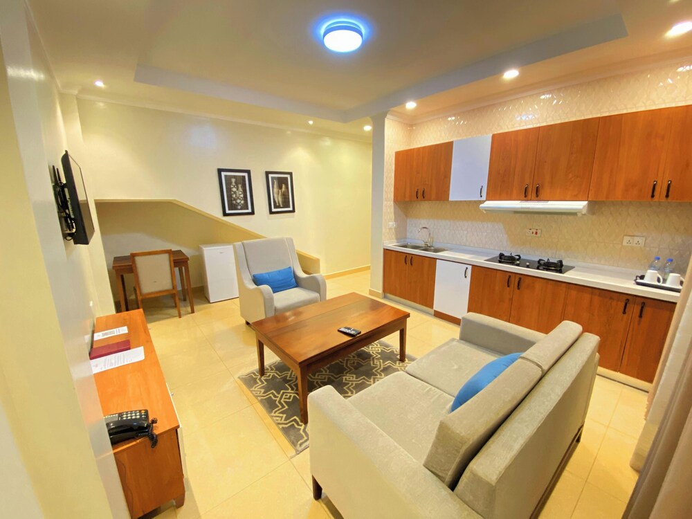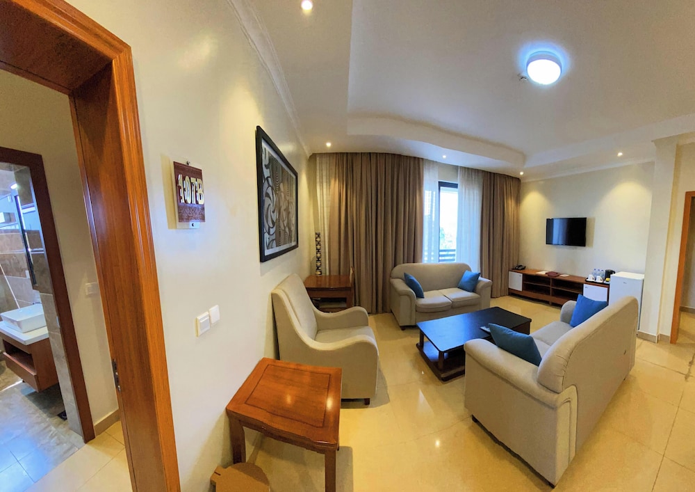 Em Kigali (Remera), URBAN PARK SUITES ficará a 5 minutos de carro de Comissão de Desenvolvimento do Ruanda e de Estádio Amahoro. Este hotel de luxo está a 1,7 km (1,1 mi) de BK Arena e a 3,1 km (1,9 mi) de Mercado de Kimironko. Sinta-se em casa num dos 18 quartos com ar condicionado, um minibar e Smart TV. Ligue-se à internet com e sem fios gratuita para estar sempre contactável. Em alternativa, assista a uma seleção de canais por cabo. As casas de banho estão equipadas com um polibã, secadores de cabelo e roupões. As comodidades incluem ainda cofres e secretárias. A limpeza dos quartos é efetuada diária. As distâncias são apresentadas à 0,1 milha e ao quilómetro mais próximo.