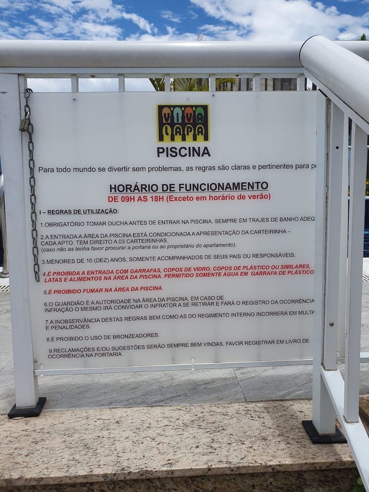 - A piscina está aberta das 8:00 às 18:00.