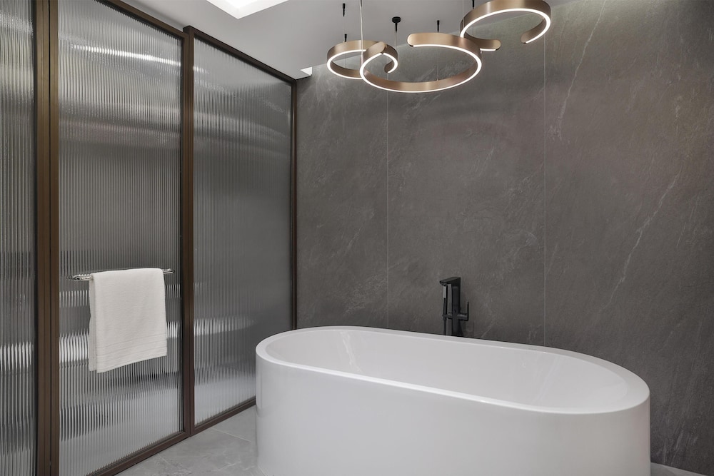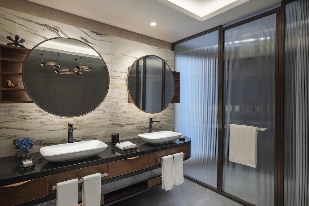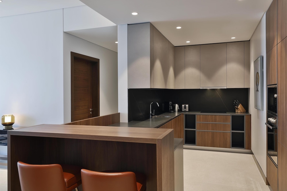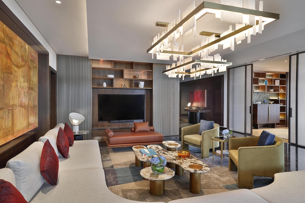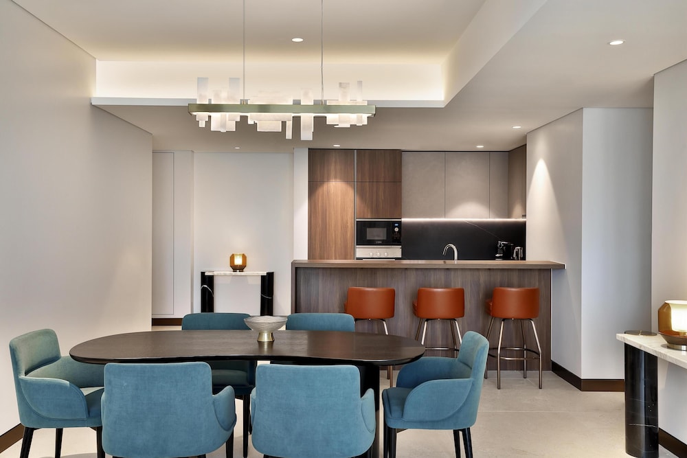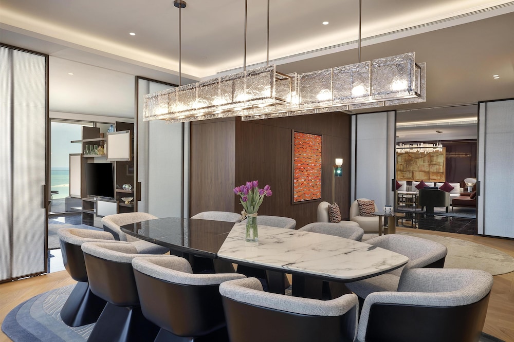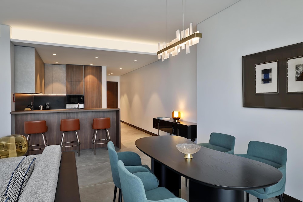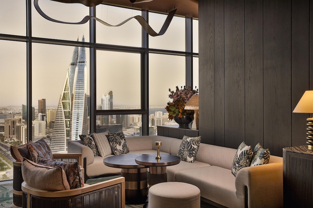 Com uma estadia Conrad Bahrain Financial Harbour, ficará numa localização central em Manama, apenas a 4 minuto(s) a pé de Bahrain Financial Harbour e a 8 minuto(s) de Museu da Pesca de Pérolas. Este hotel de luxo está a 2,1 km (1,3 mi) de Moda Mall e a 2,1 km (1,3 mi) de The Avenues Bahrain. Os 98 quartos com mobília individualizada farão com que se sinta em casa. À sua espera tem uma cozinha com um frigorífico/congelador grande e um forno. As camas têm colchões viscoelástico, edredões de penas e lençóis italianos Frette. Ao final do dia, assista a uma seleção de canais digitais no seu Smart TV de 65 polegadas. A internet sem fios permite-lhe estar sempre contactável. As comodidades incluem ainda telefone, além de cofres e de secretárias. As distâncias são apresentadas à 0,1 milha e ao quilómetro mais próximo.