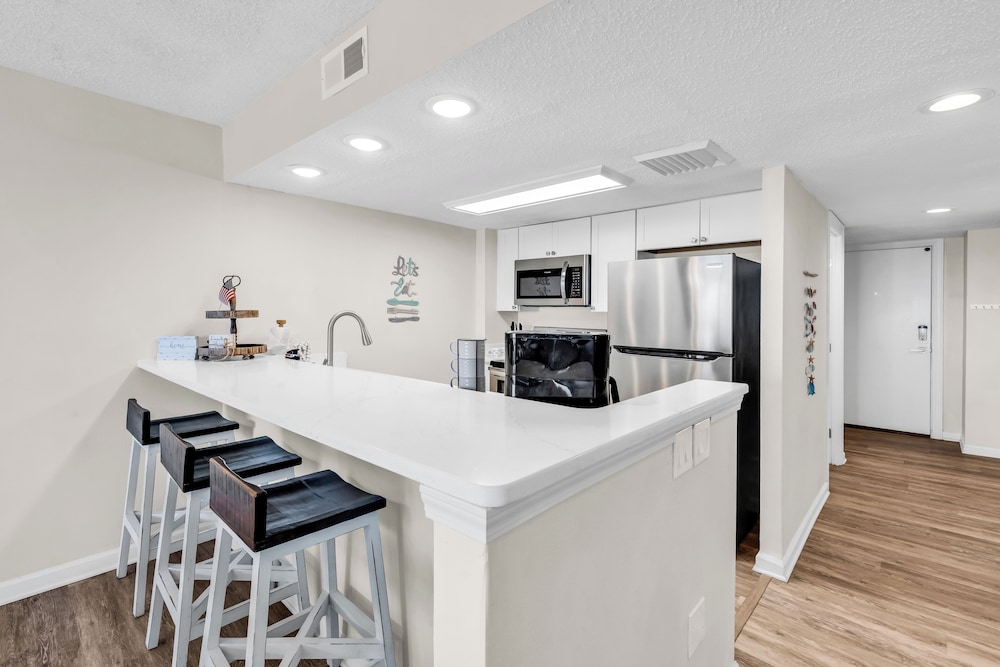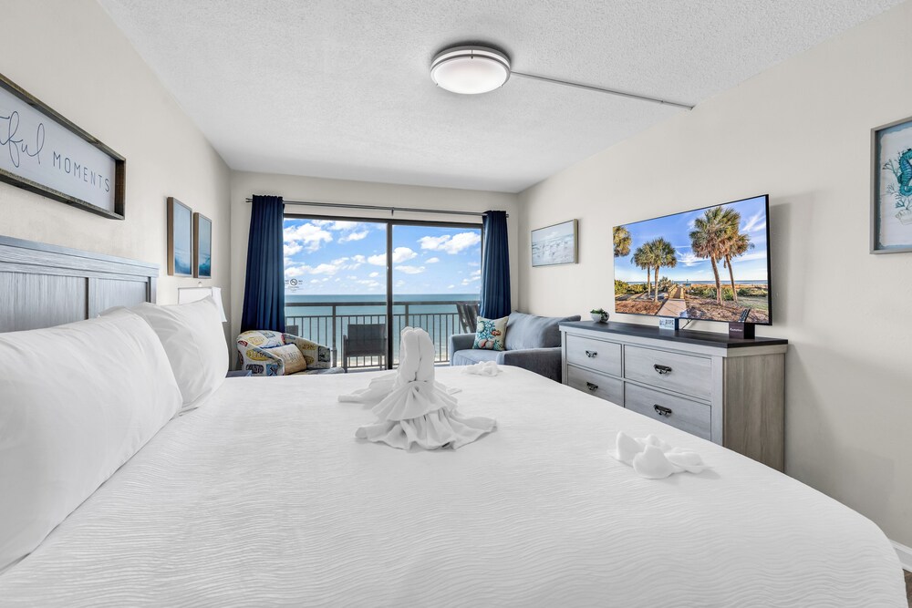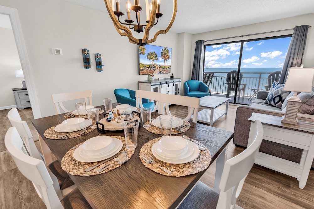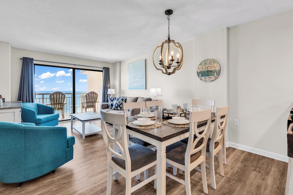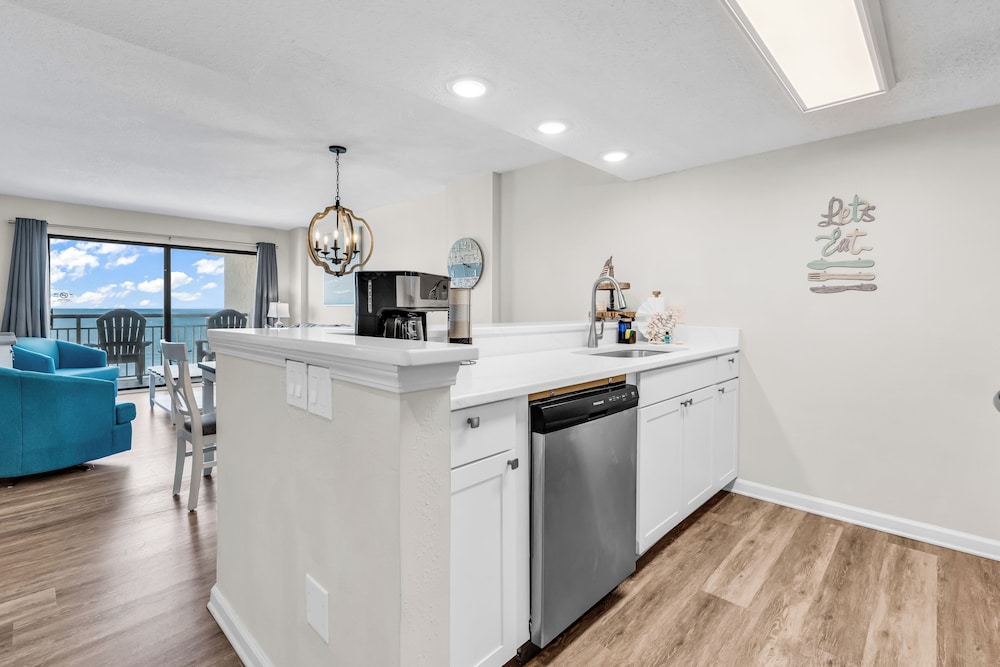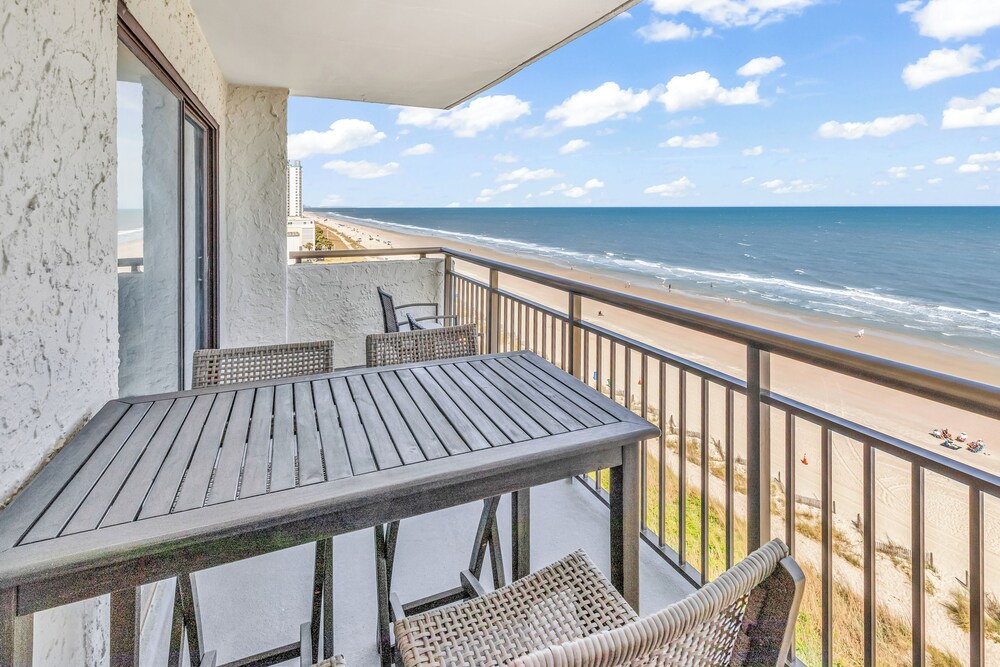 Ao alojar-se este apartamento em condomínio em Myrtle Beach, ficará em frente à praia, a 5 minutos de carro de Myrtle Beach Boardwalk e de Family Kingdom/Parque Aquático. Este aparthotel de praia está a 7 km (4,3 mi) de Broadway at the Beach e a 2,4 km (1,5 mi) de Myrtle Beach State Park. Sinta-se em casa neste aparthotel com decoração personalizada, cozinha, um frigorífico e um forno. A unidade dispõe de uma varanda com mesa e cadeiras. Para preencher os seus serões, tem à sua disposição uma Smart TV de 60 polegadas com canais digitais, além de internet sem fios, para estar sempre contactável. As comodidades incluem uma área de estar independente e um micro-ondas. As distâncias são apresentadas à 0,1 milha e ao quilómetro mais próximo.