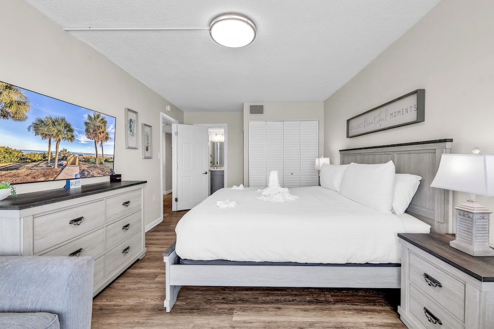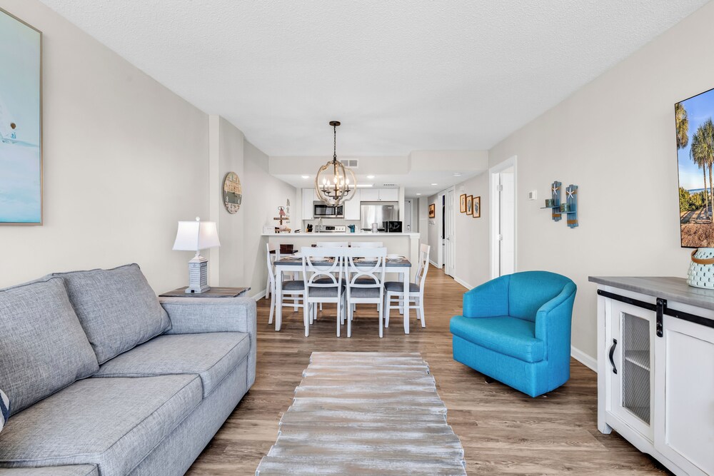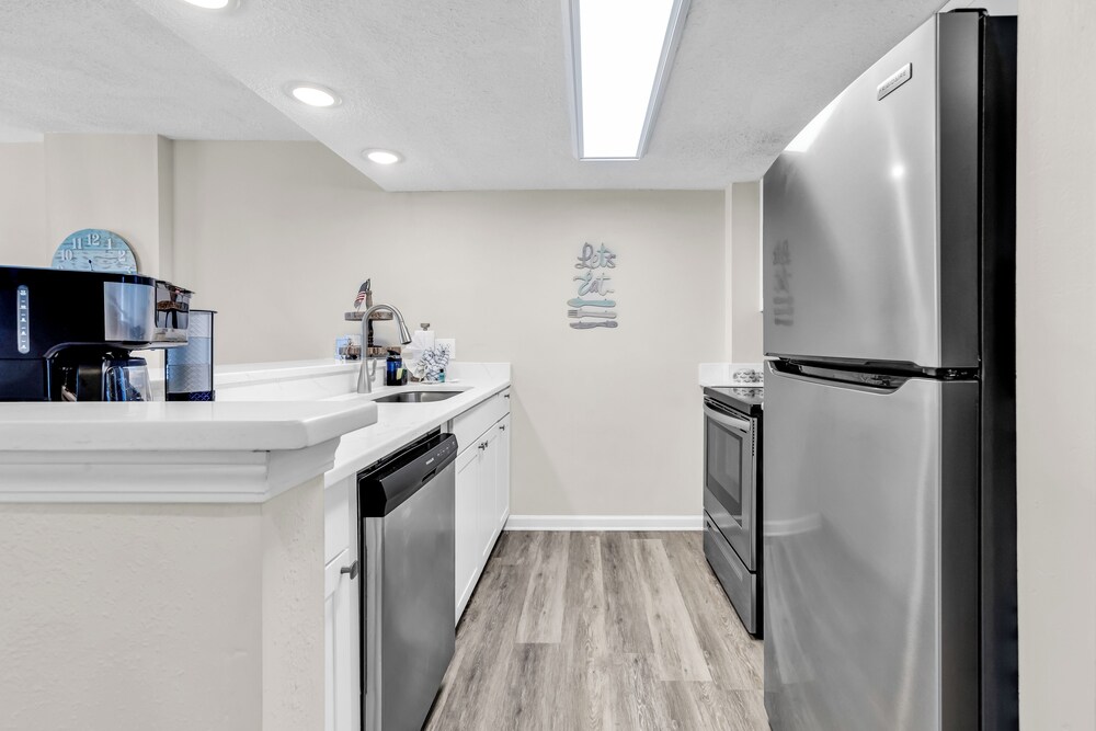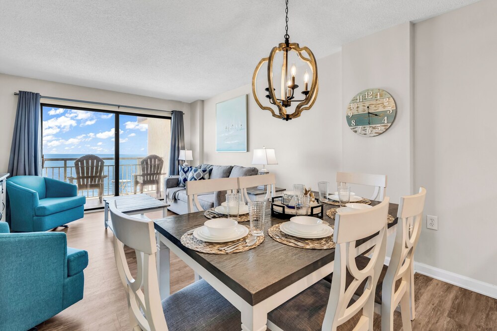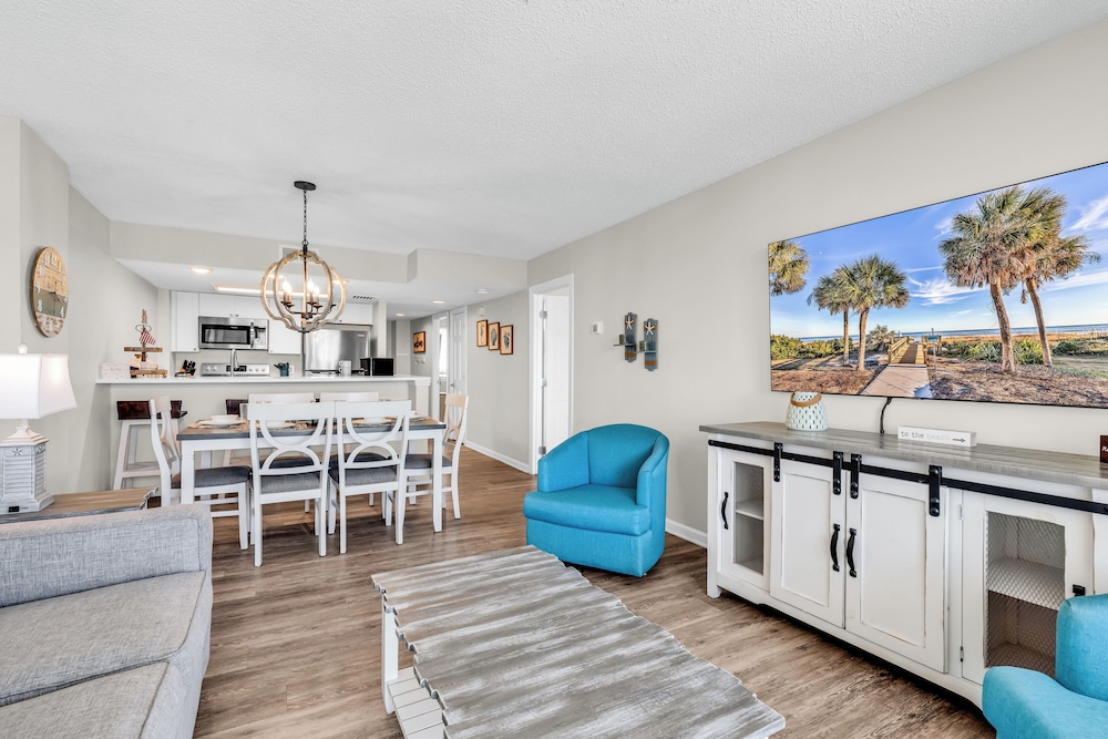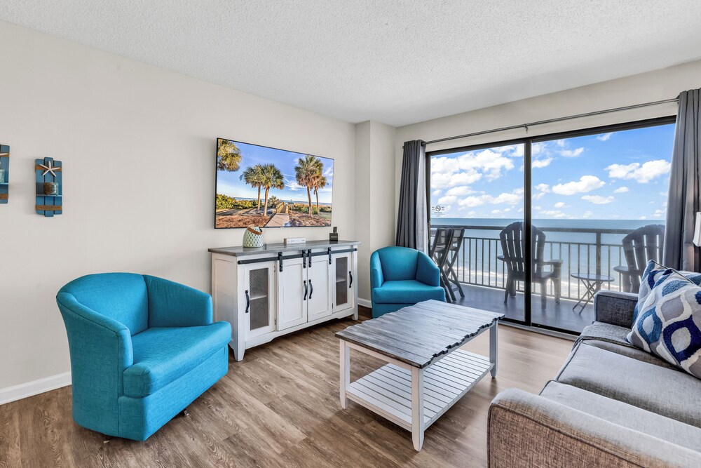 Ao alojar-se este apartamento em condomínio em Myrtle Beach, ficará em frente à praia, a 5 minutos de carro de Myrtle Beach Boardwalk e de Family Kingdom/Parque Aquático. Este aparthotel de praia está a 7 km (4,3 mi) de Broadway at the Beach e a 2,4 km (1,5 mi) de Myrtle Beach State Park. Sinta-se em casa neste aparthotel com decoração personalizada, cozinha, um frigorífico e um forno. A unidade dispõe de uma varanda com mesa e cadeiras. Para preencher os seus serões, tem à sua disposição uma Smart TV de 60 polegadas com canais digitais, além de internet sem fios, para estar sempre contactável. As comodidades incluem uma área de estar independente e um micro-ondas. As distâncias são apresentadas à 0,1 milha e ao quilómetro mais próximo.