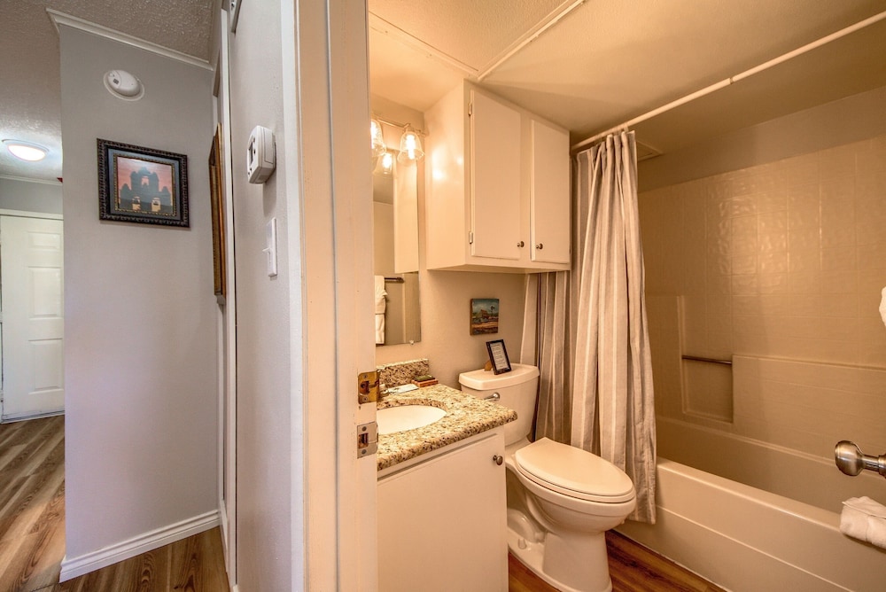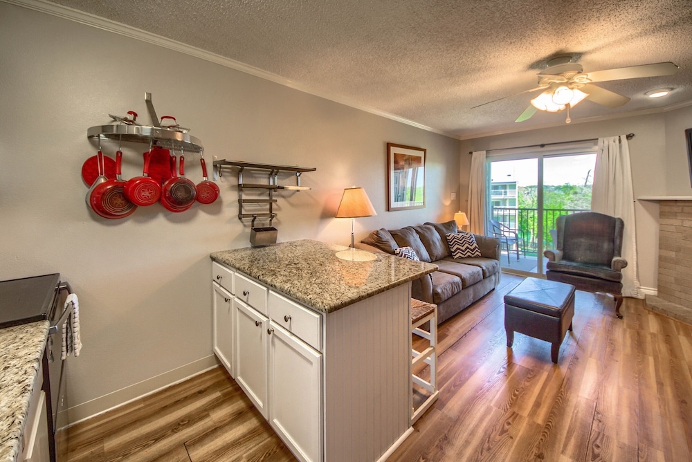 Em New Braunfels (Centro), este apartamento em condomínio ficará a alguns passos de Comal River e a 3 minuto(s) de carro de Schlitterbahn New Braunfels Waterpark. Este aparthotel de golfe está a 22,5 km (14 mi) de San Marcos Premium Outlets e a 2,2 km (1,4 mi) de Guadalupe River. Para garantir o seu conforto, Este condomínio oferece ar condicionado, um frigorífico e um micro-ondas. O acesso à internet sem fios permite-lhe estar sempre contactável. As comodidades incluem uma cafeteira/bule e uma ventoinha no teto. As distâncias são apresentadas à 0,1 milha e ao quilómetro mais próximo.