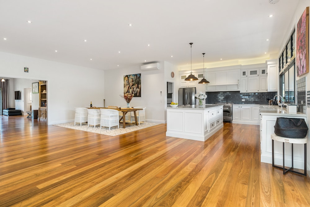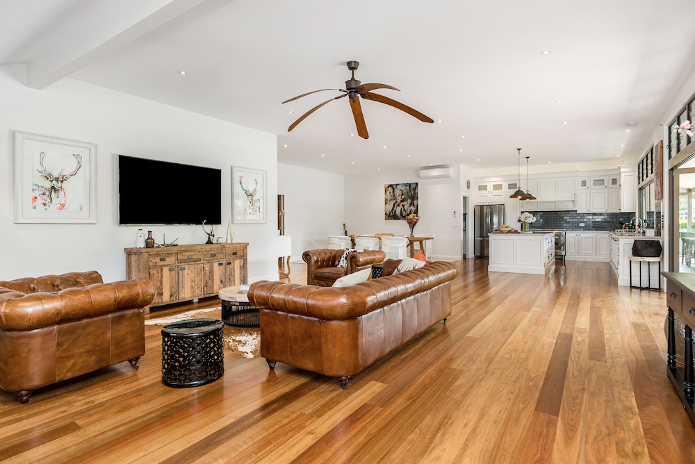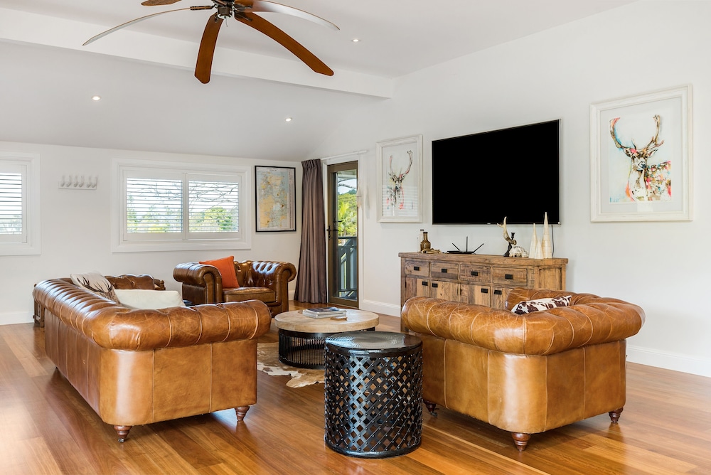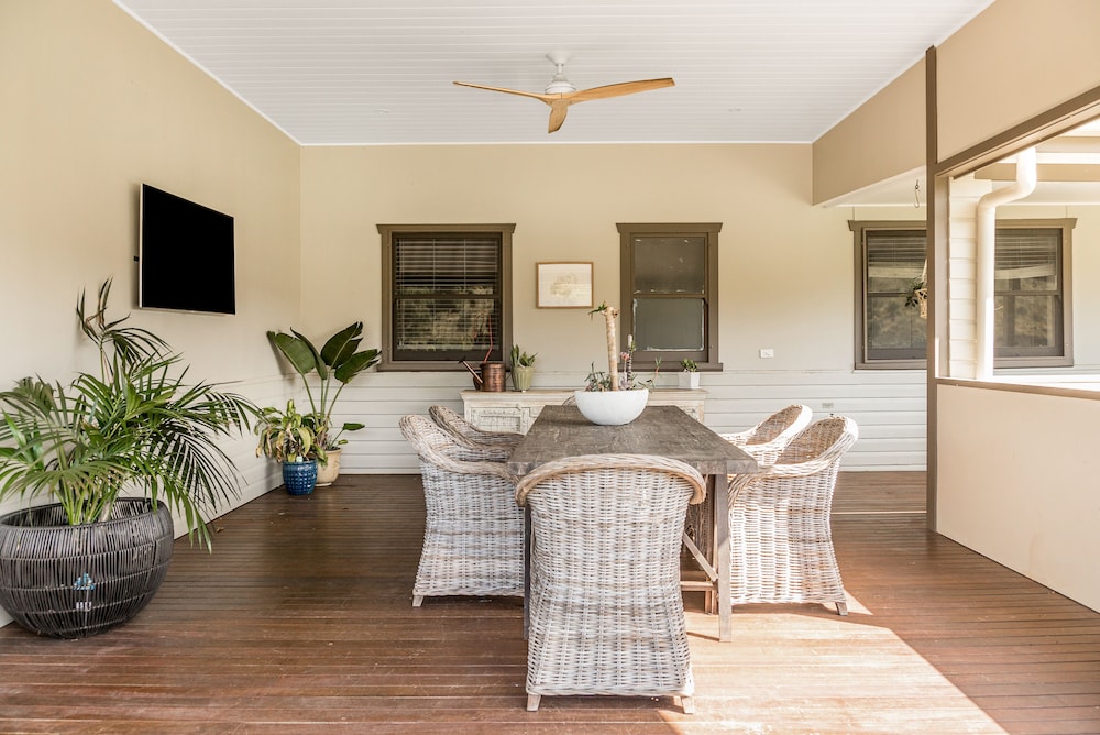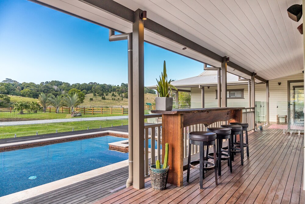 Em Newrybar, esta casa de férias ficará numa zona rural, a 10 minutos de carro de Broken Head Beach e de Broken Head Nature Reserve. Esta casa de férias está a 12,9 km (8 mi) de Wategos Beach e a 6,1 km (3,8 mi) de Tallow Beach. Sinta-se em casa nesta casa de férias com ar condicionado, cozinha, um frigorífico/congelador grande e um forno. Para preencher os seus serões, tem ao seu dispor internet sem fios e Smart TV. As comodidades incluem um micro-ondas e uma máquina de lavar/secar roupa. As distâncias são apresentadas à 0,1 milha e ao quilómetro mais próximo.