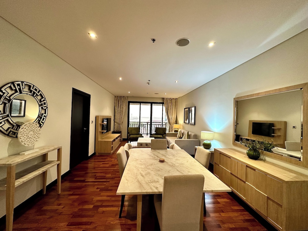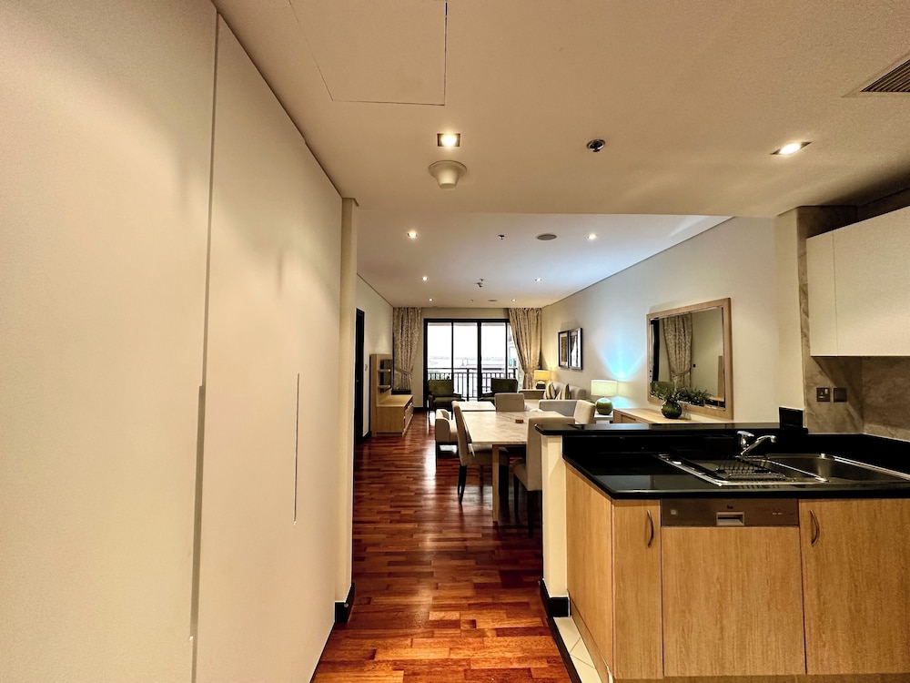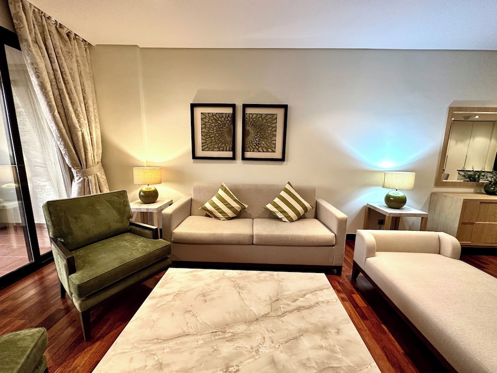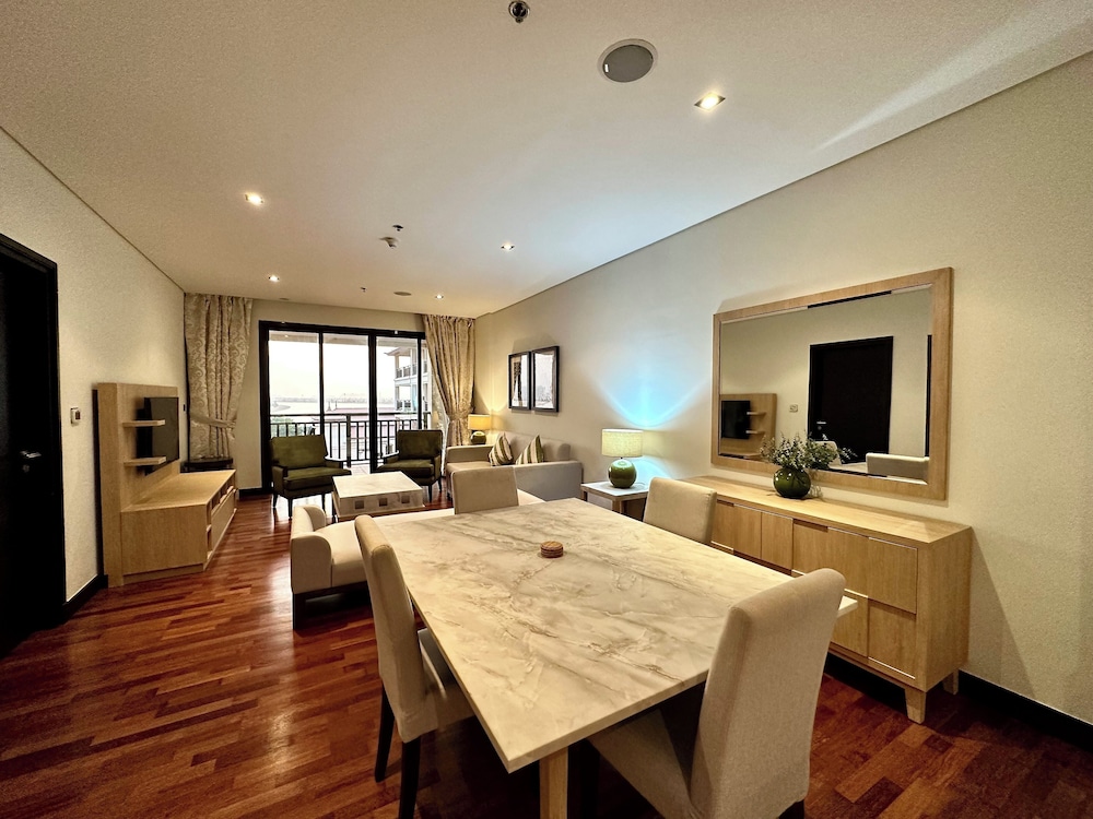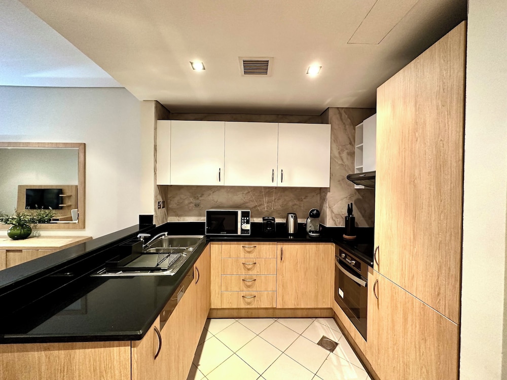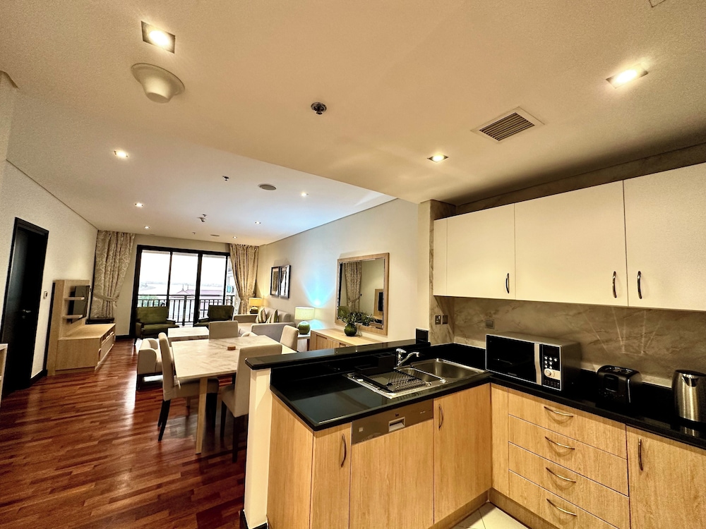 Com uma estadia este apartamento em Dubai (Palm Jumeirah), ficará a 10 minutos de carro de Aquaventure e de Aquário das Câmaras Perdidas. Este apartamento de luxo está a 15,6 km (9,7 mi) de Praia da Marina e a 16,8 km (10,4 mi) de Burj Al Arab. Sinta-se em casa neste apartamento com decoração personalizada, cozinha, um frigorífico/congelador grande e um forno. Para preencher os seus serões, tem à sua disposição uma Smart TV de 55 polegadas com canais digitais, além de internet sem fios, para estar sempre contactável. As comodidades incluem um cofre e uma secretária. As distâncias são apresentadas à 0,1 milha e ao quilómetro mais próximo.