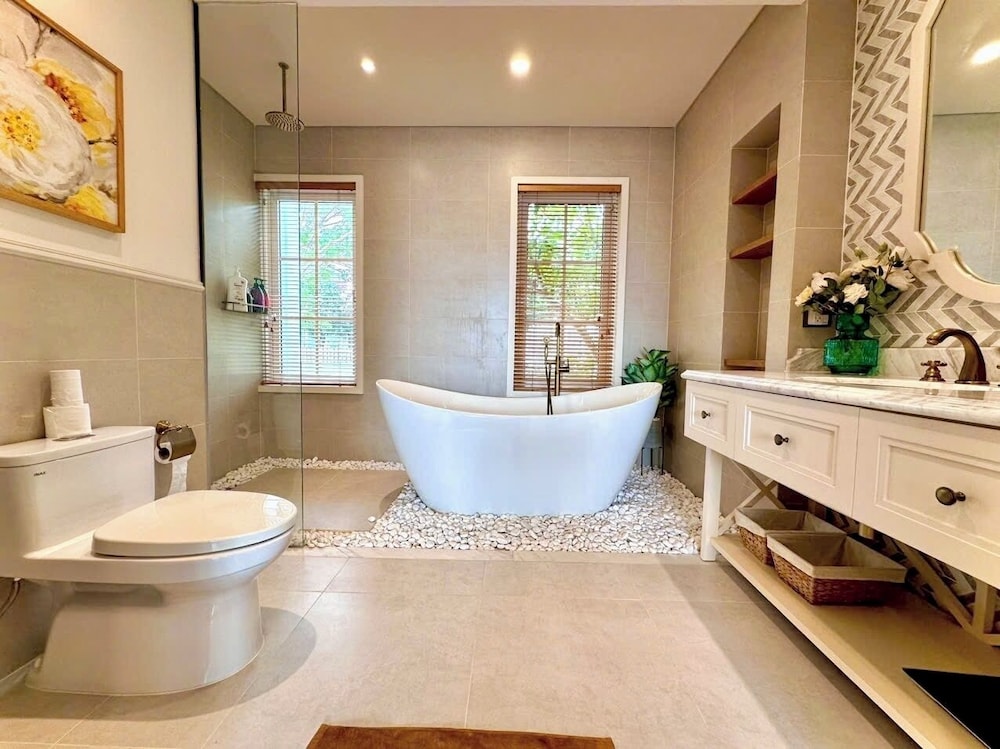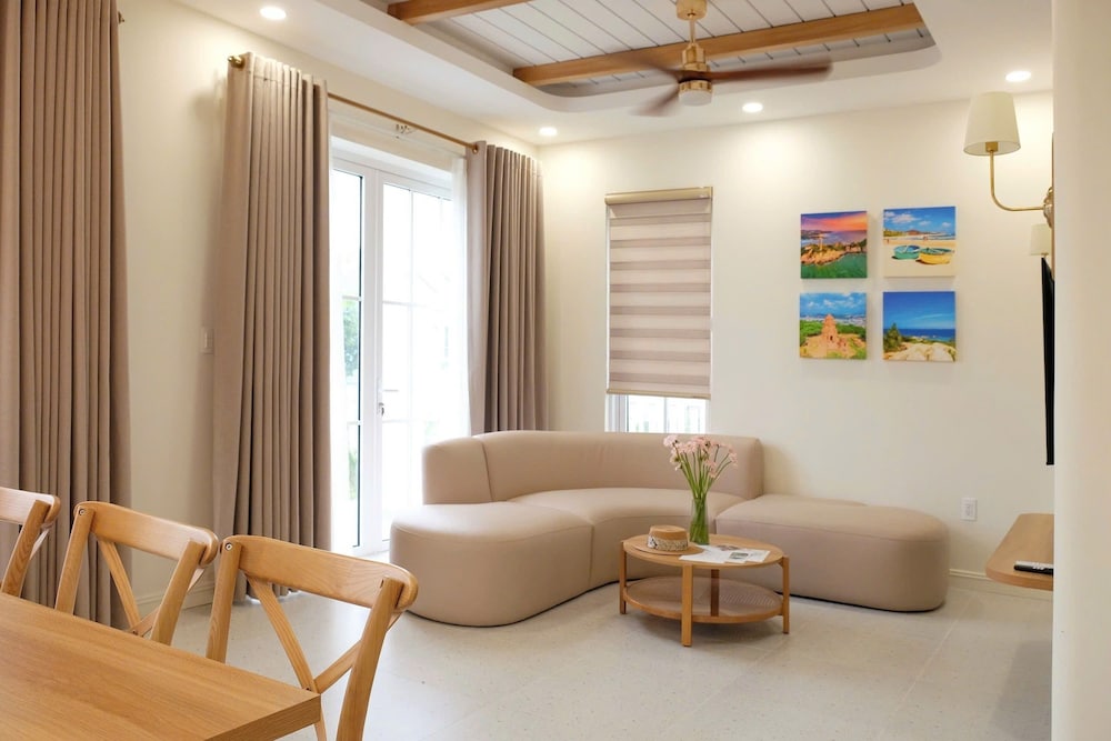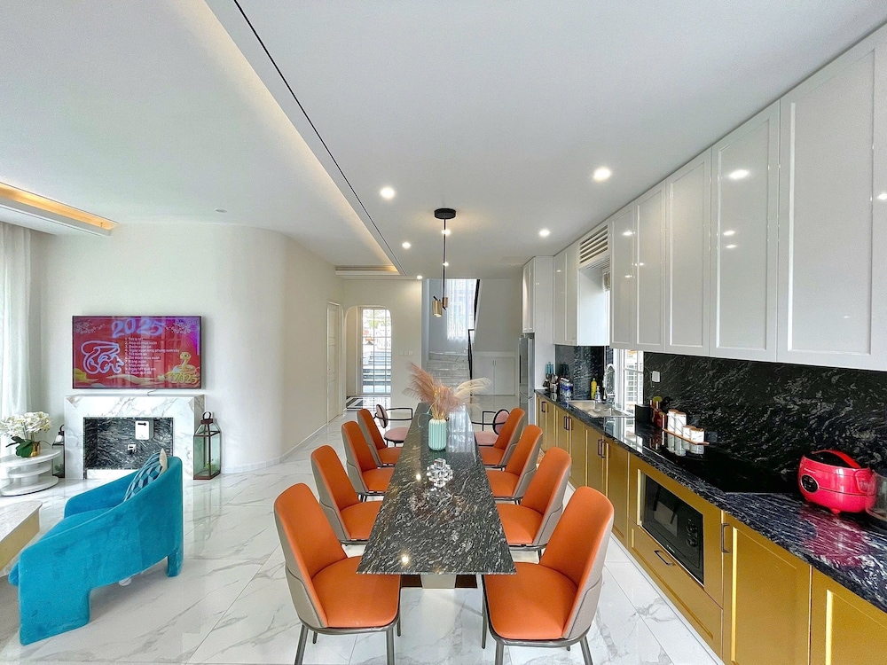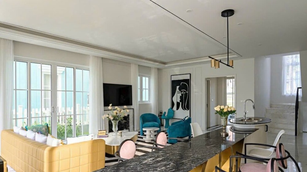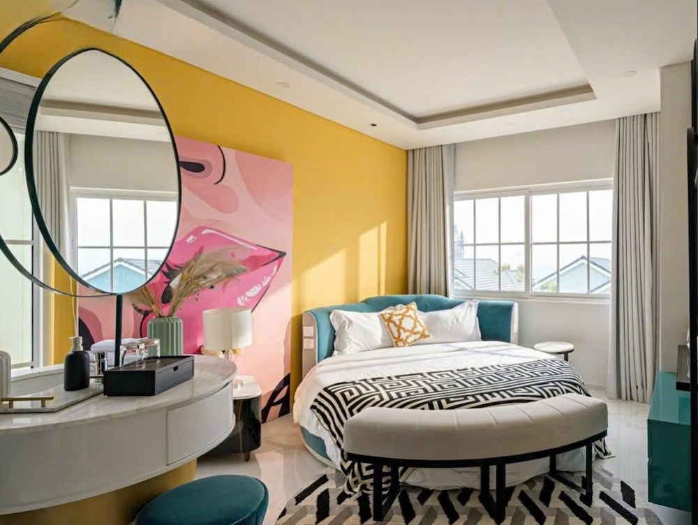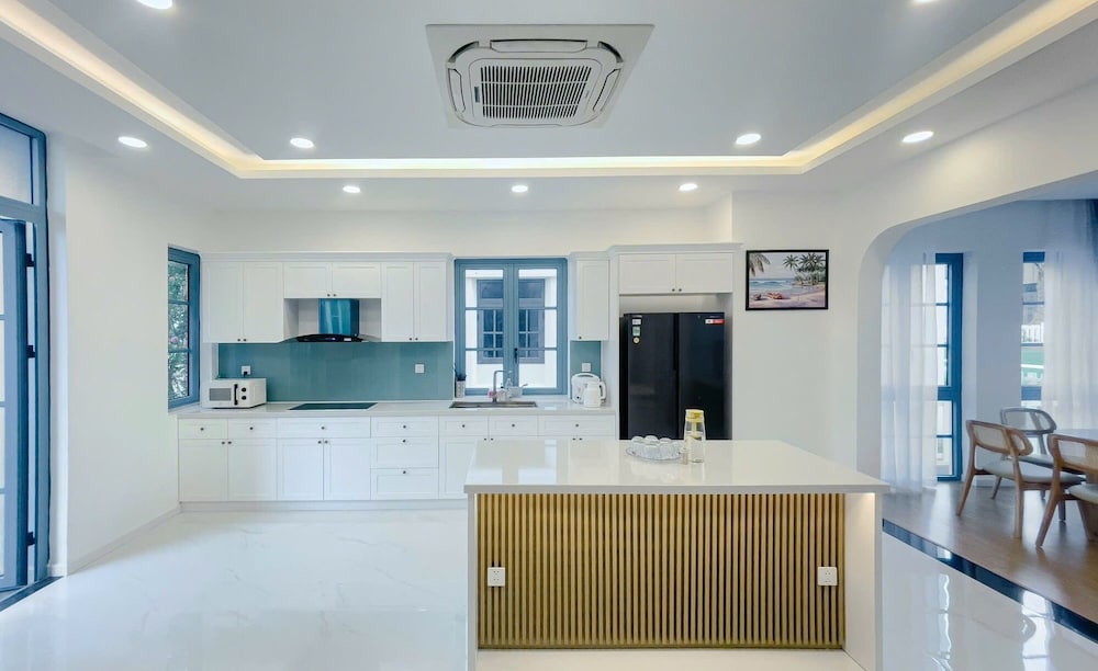 Com uma estadia nRefined Phan Thiet - Novaworld Villas em Phan Thiet (Xã Tiến Thành), ficará a alguns passos de Praia Bikini e a 9 minuto(s) a pé de Terra do Circo. Esta villa de praia está a 0,9 km (0,6 mi) de Parque Aquático Wonderland Phan Thiet e a 2,4 km (1,5 mi) de Praia de Tien Thanh. Os 5 quartos com mobília individualizada farão com que se sinta em casa. À sua espera tem uma cozinha com um frigorífico/congelador grande e uma placa de cozinha. As unidades contam com uma varanda ou pátio interior com mesa e cadeiras, para saborear uma bela refeição ao ar livre. Ao final do dia, assista a uma seleção de canais digitais no seu Smart TV de 55 polegadas. A internet sem fios permite-lhe estar sempre contactável. As comodidades incluem ainda secretárias e áreas de estar separadas. A limpeza dos quartos é efetuada Limpeza dos quartos a pedido. As distâncias são apresentadas à 0,1 milha e ao quilómetro mais próximo.