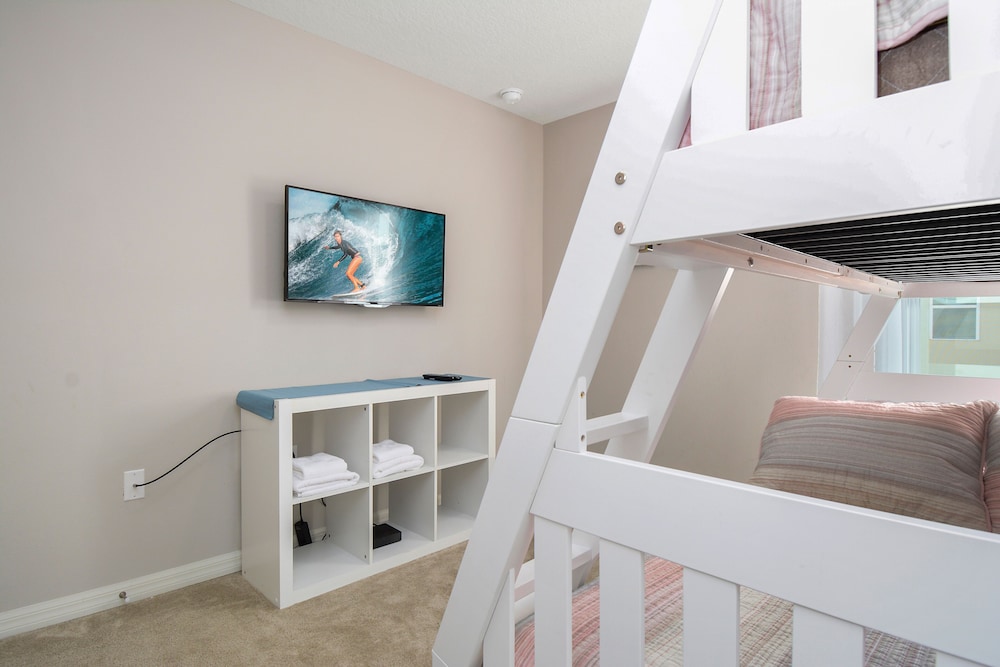 Ao alojar-se esta casa de férias em Kissimmee, ficará junto ao lago, a 5 minuto(s) de carro de Centro Histórico e a 10 minuto(s) de Walt Disney World® Resort. Esta casa de férias para famílias está a 8,6 km (5,3 mi) de Disney Springs™ e a 9,8 km (6,1 mi) de ESPN Wide World of Sports Complex. Esta casa de férias com decoração personalizada brinda quem aqui passa com várias mordomias, incluindo uma Smart TV e banheiras de hidromassagem privativas. A unidade dispõe de uma varanda ou pátio interior. Tem ao seu dispor cozinha com um frigorífico/congelador grande, um forno e uma placa de cozinha. O acesso à internet com e sem fios é grátis e poderá, ainda, assistir aos seus programas de entretenimento favoritos no televisor de ecrã plano de 60 polegadas com canais por cabo. As distâncias são apresentadas à 0,1 milha e ao quilómetro mais próximo.