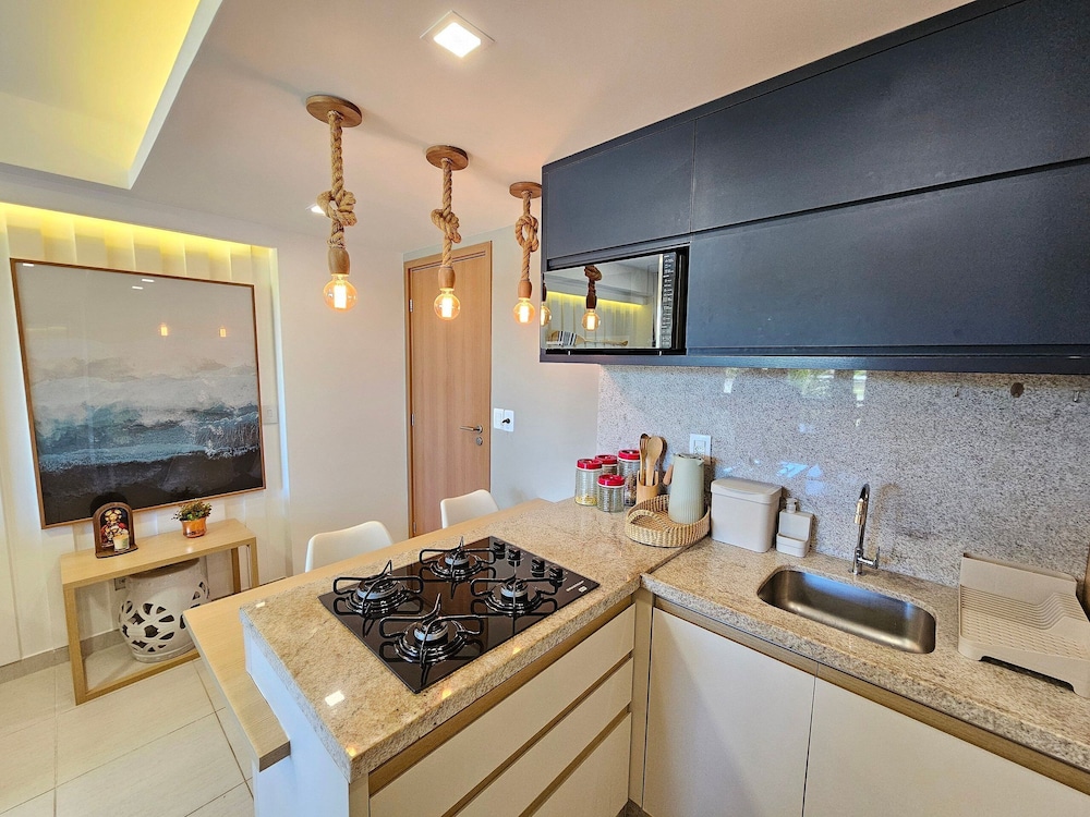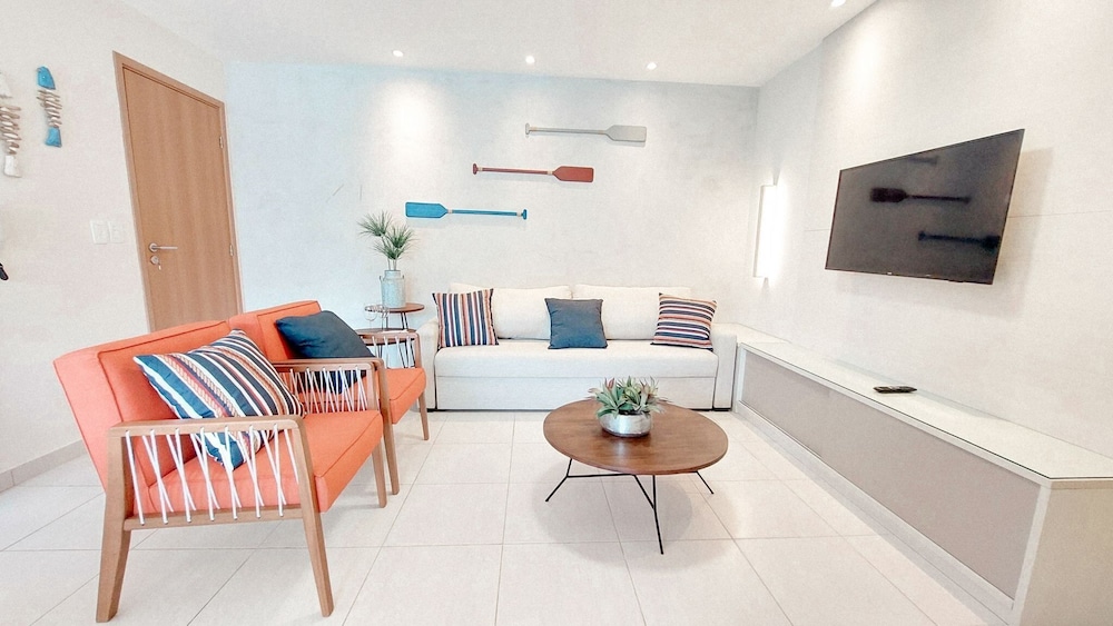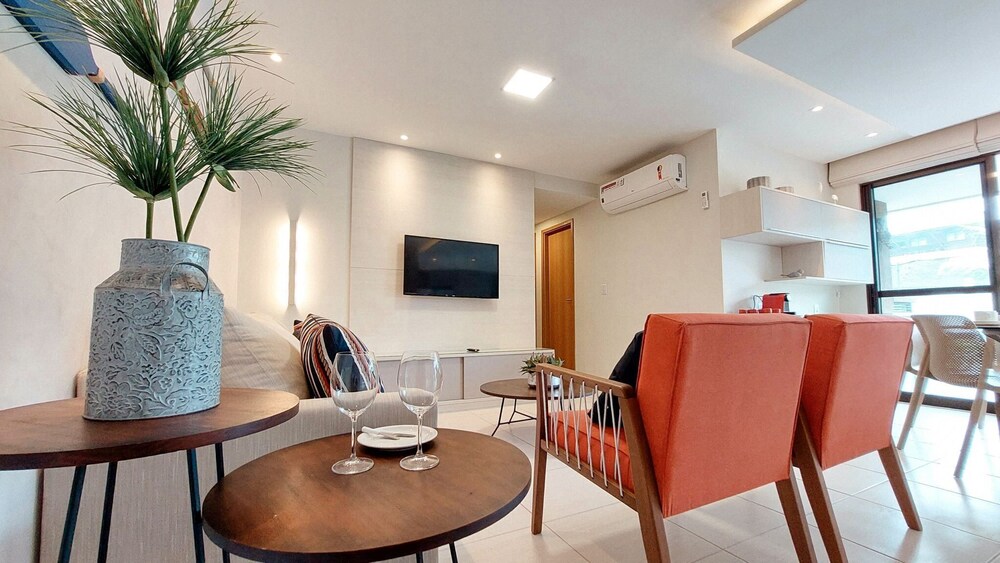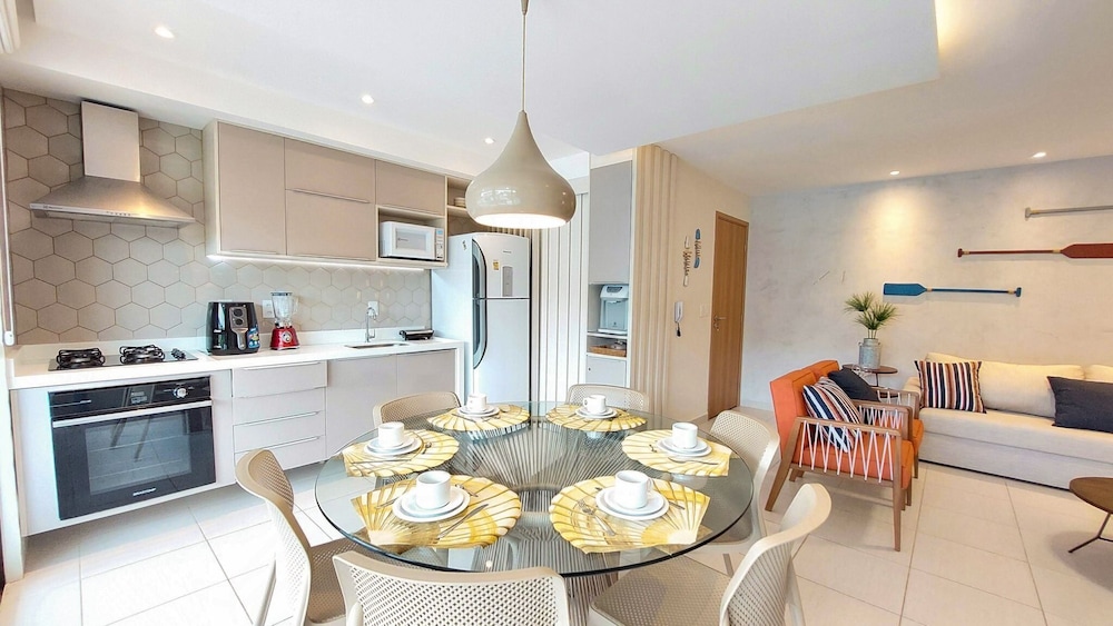 Em Ipojuca (Porto de Galinhas), Flats no Cupe Beach Living ficará a 10 minutos de carro de Praia de Maracaípe e de Praia do Merepe. Este apartamento para famílias está a 3,8 km (2,3 mi) de Praia de Cupe e a 6,1 km (3,8 mi) de Praia de Muro Alto. Os 8 quartos com decoração personalizada farão com que se sinta em casa. À sua espera tem uma cozinha, se quiser preparar os seus pratos favoritos. As unidades contam com uma varanda ou pátio interior com mesa e cadeiras, para saborear uma bela refeição ao ar livre. Ao final do dia, assista a uma seleção de canais via satélite no seu Smart TV de 32 polegadas. A internet sem fios permite-lhe estar sempre contactável. As comodidades incluem ainda frigoríficos e máquinas de secar roupa. As distâncias são apresentadas à 0,1 milha e ao quilómetro mais próximo.