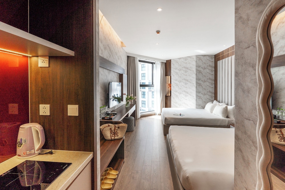 As principais comodidades incluem uma receção aberta 24 horas, armazenamento de bagagem e uma lavandaria. Há estacionamento com motorista grátis no local. Deleite-se com uma imersão revitalizante numa das 2 piscinas exteriores, ou experimente algo diferente, por exemplo, um tobogã. Termine o dia com uma bebida refrescante no bar junto à piscina. O apartamento serve pequenos-almoços de cozinha local diariamente entre as 6:00 e as 11:00 mediante uma sobretaxa.- Tarifa de pequeno-almoço inspirado na cozinha local: 80000 VND por pessoa (valor aproximado)
