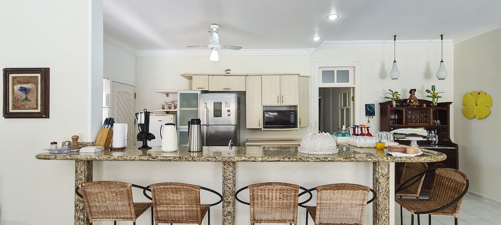 Com uma estadia esta casa de férias em Bertioga (Riviera de São Lourenço), ficará a 5 minuto(s) a pé de Praia de São Lourenço e a 7 minuto(s) de Shopping Riviera de São Lourenço. Esta casa de férias está a 6,9 km (4,3 mi) de Praia de Itaguaré e a 7 km (4,4 mi) de Rio Itapanhau. Esta casa de férias com decoração personalizada brinda quem aqui passa com várias mordomias, incluindo um televisor LED e piscinas privativas. A unidade dispõe de um pátio interior. Tem ao seu dispor cozinha com um frigorífico, um forno e um micro-ondas. As opções de entretenimento ao seu dispor incluem um televisor com canais digitais e internet sem fios para estar sempre contactável. As distâncias são apresentadas à 0,1 milha e ao quilómetro mais próximo.