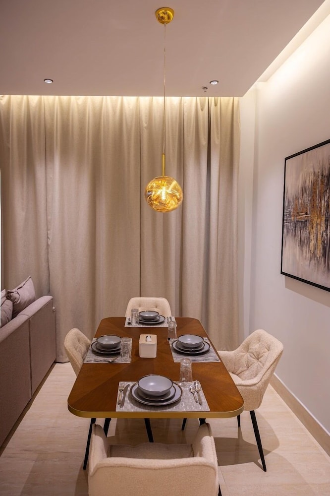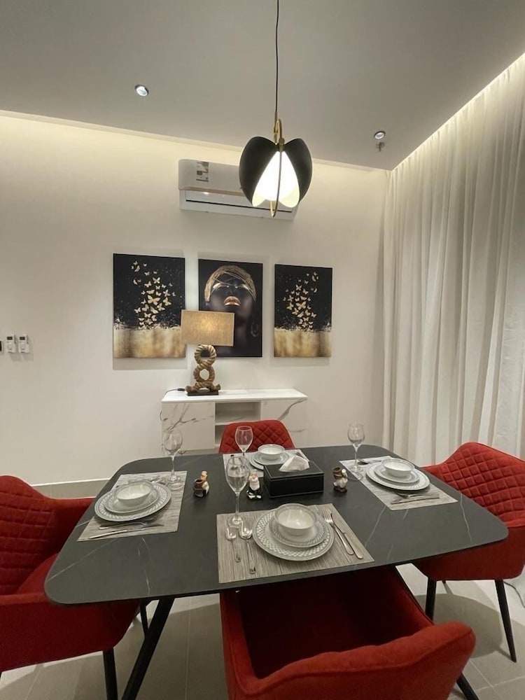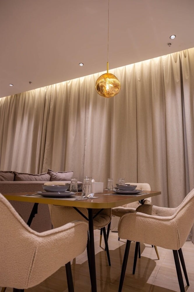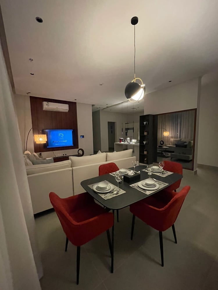 Com uma estadia Riyadh Luxury, ficará numa localização central em Riyadh, a 15 minutos de carro de Centro de Congressos e de Exposições de Riade e de Galeria de Arte Al Ajlan. Este aparthotel está a 21,3 km (13,2 mi) de Centro de Conferências Rei Abdulaziz e a 3,3 km (2,1 mi) de Sabratha Romana. Sinta-se em casa num dos 9 quartos. Mantenha-se em contacto graças à internet sem fios. As casas de banho privativas têm secadores de cabelo e chinelos. As comodidades incluem ainda secretárias e máquinas de lavar roupa. A limpeza dos quartos é efetuada semanal. As distâncias são apresentadas à 0,1 milha e ao quilómetro mais próximo.