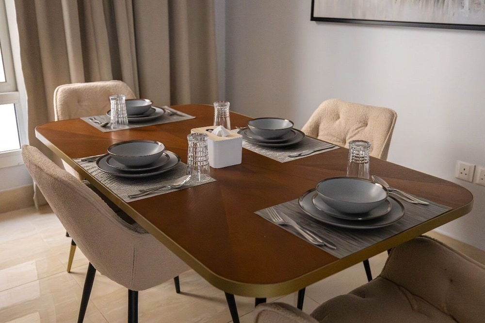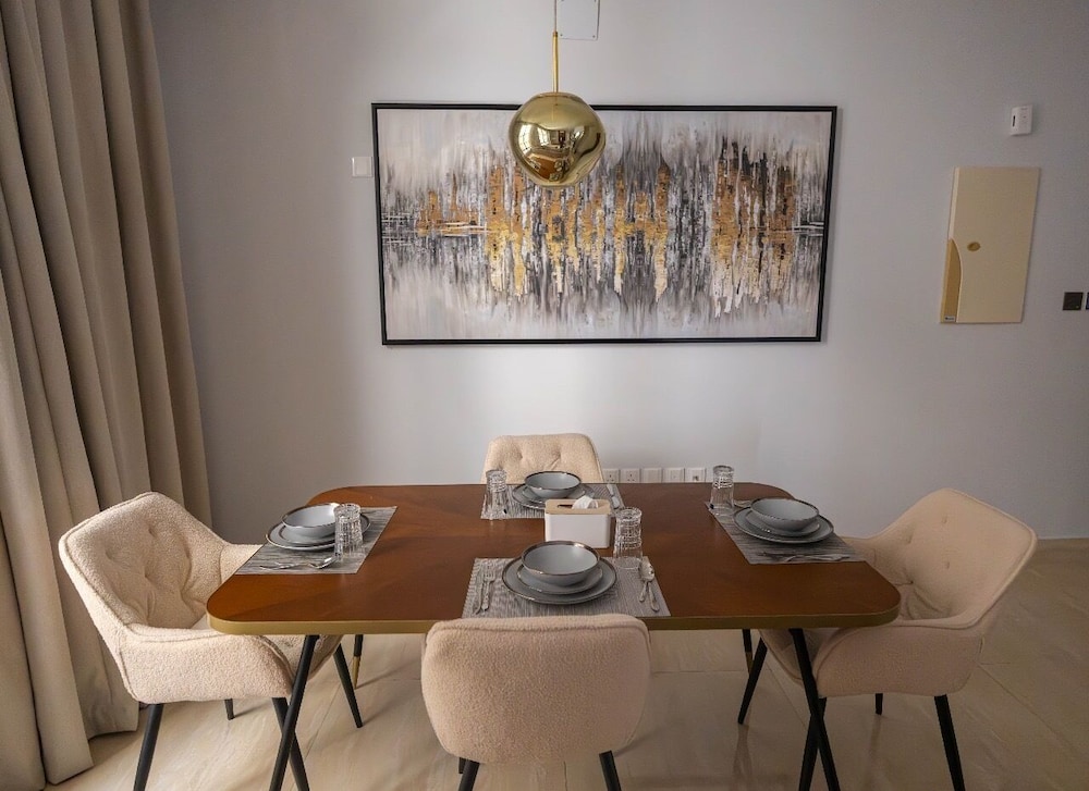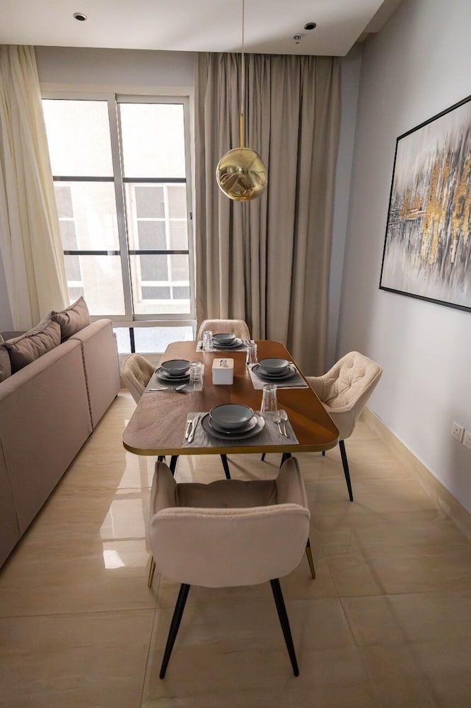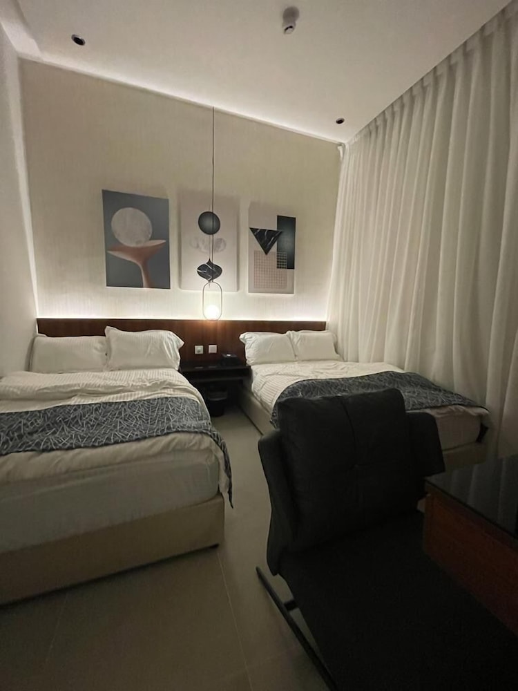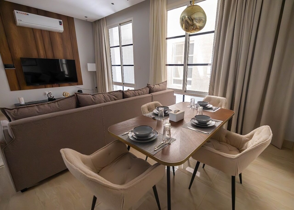Com uma estadia Riyadh Luxury, ficará numa localização central em Riyadh, a 15 minutos de carro de Centro de Congressos e de Exposições de Riade e de Galeria de Arte Al Ajlan. Este aparthotel está a 21,3 km (13,2 mi) de Centro de Conferências Rei Abdulaziz e a 3,3 km (2,1 mi) de Sabratha Romana. Sinta-se em casa num dos 9 quartos. Mantenha-se em contacto graças à internet sem fios. As casas de banho privativas têm secadores de cabelo e chinelos. As comodidades incluem ainda secretárias e máquinas de lavar roupa. A limpeza dos quartos é efetuada semanal. As distâncias são apresentadas à 0,1 milha e ao quilómetro mais próximo.