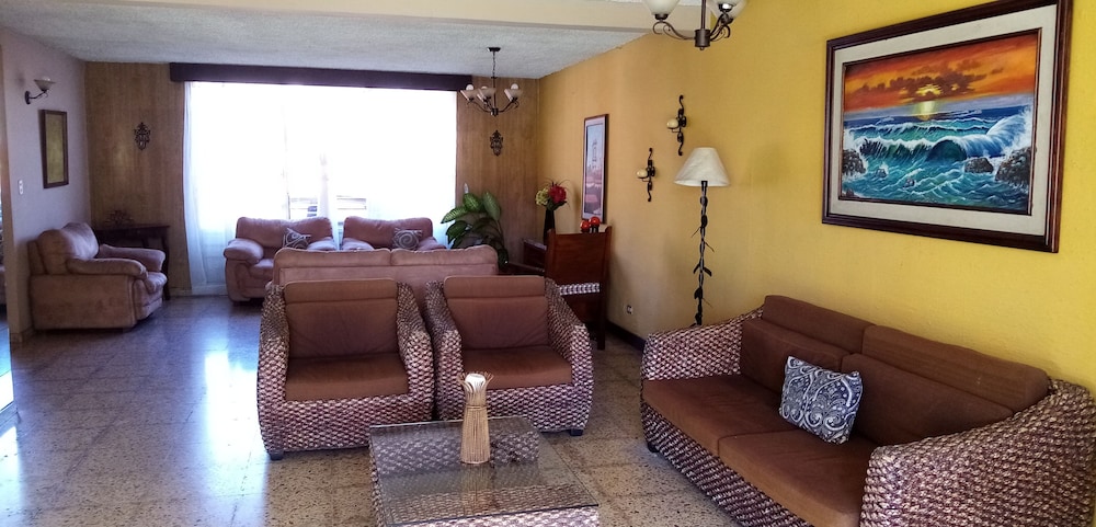 Com uma estadia Casa San Benito em San Salvador (San Benito), ficará a 5 minutos de carro de Monumento al Salvador del Mundo e de Shopping Center La Gran Via. Esta residencial está a 3,6 km (2,3 mi) de Metrocentro e a 6,4 km (4 mi) de Plaza Merliot. Sinta-se em casa num dos 8 quartos com um micro-ondas. O acesso à internet sem fios permite-lhe estar sempre contactável. Ao final do dia, assista a uma seleção de canais por cabo. As casas de banho estão equipadas com um polibã e um chuveiro fixo. As distâncias são apresentadas à 0,1 milha e ao quilómetro mais próximo.