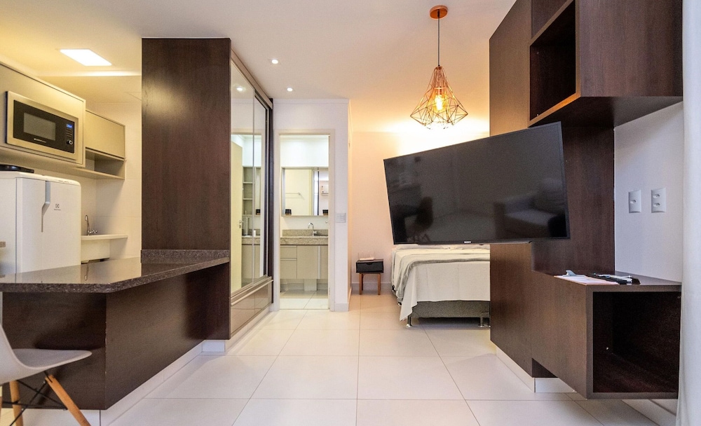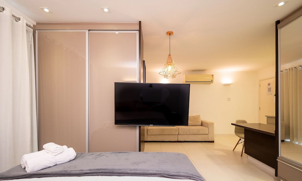 Com uma estadia WBU - Studios Modernos no Setor Bueno em Goiânia (Sector Bueno), ficará a 10 minutos de carro de Flamboyant Shopping Center e de Goiânia Shopping. Este apartamento está a 0,9 km (0,6 mi) de Parque Vaca Brava e a 1,4 km (0,9 mi) de Complexo de Compras Órion. Os 5 quartos climatizados oferecem uma cozinha, onde pode dar largas à sua veia culinária. Ao final do dia, assista a uma seleção de entretenimento no Smart TV disponível, de 32 polegadas, ou ligue-se à internet sem fios. As comodidades incluem ainda micro-ondas e máquinas de lavar roupa. As distâncias são apresentadas à 0,1 milha e ao quilómetro mais próximo.