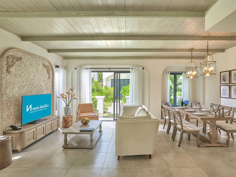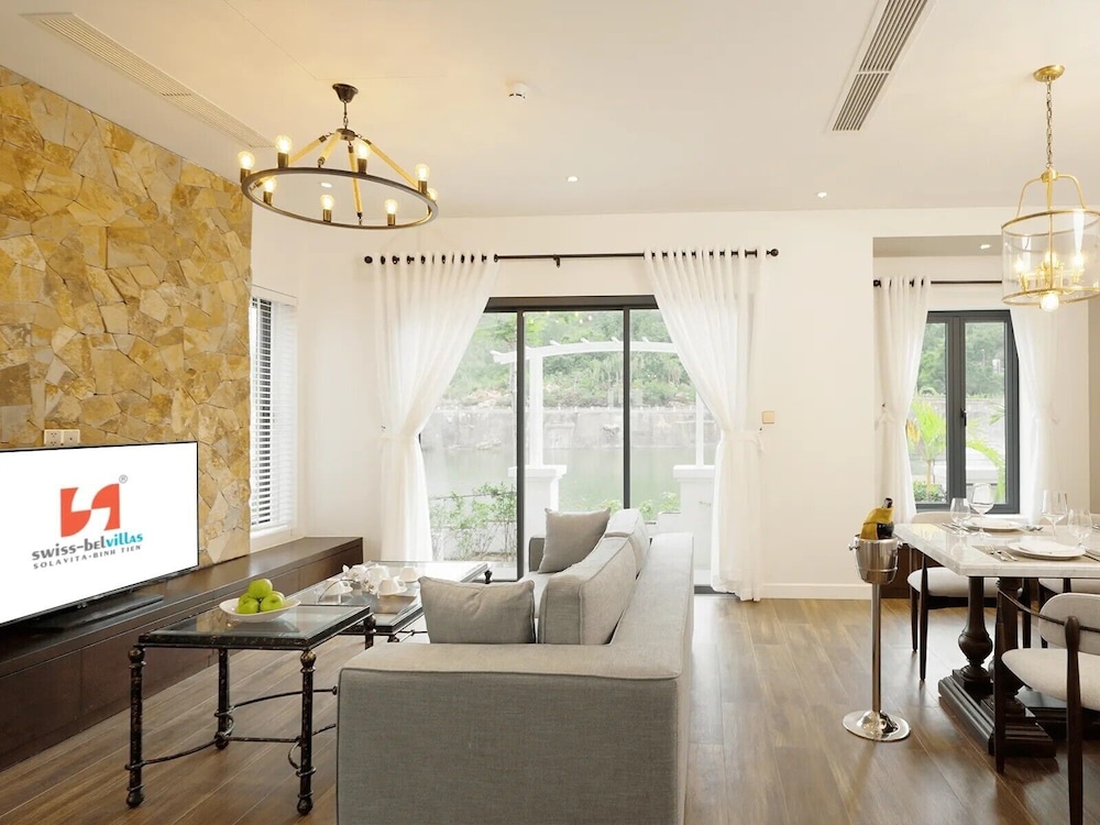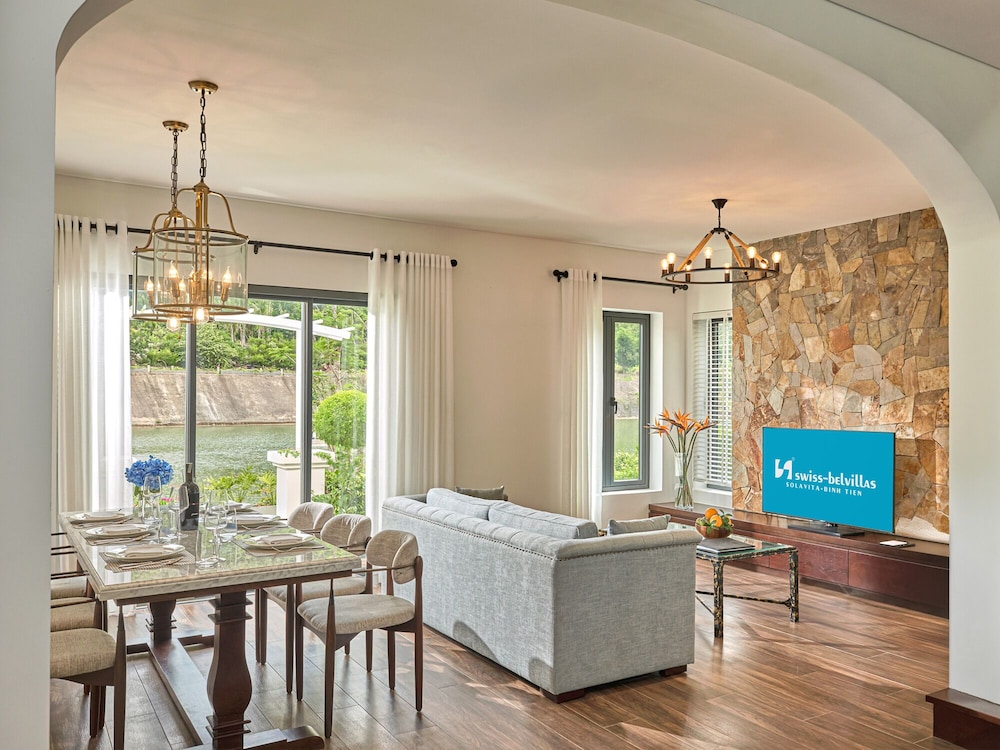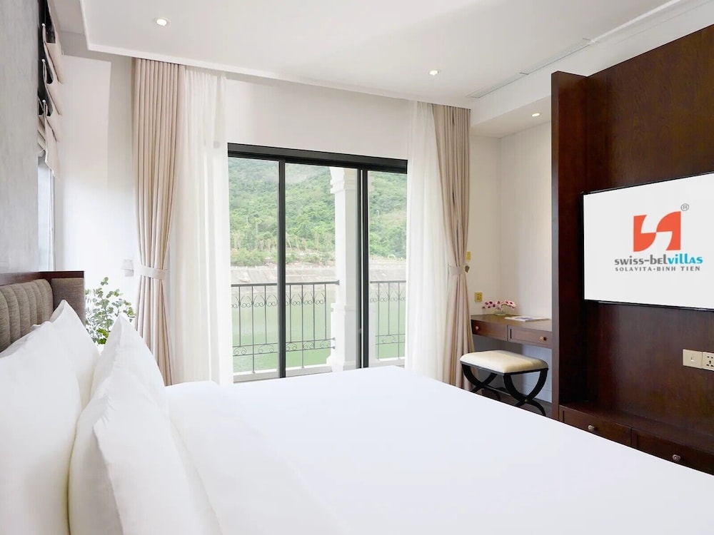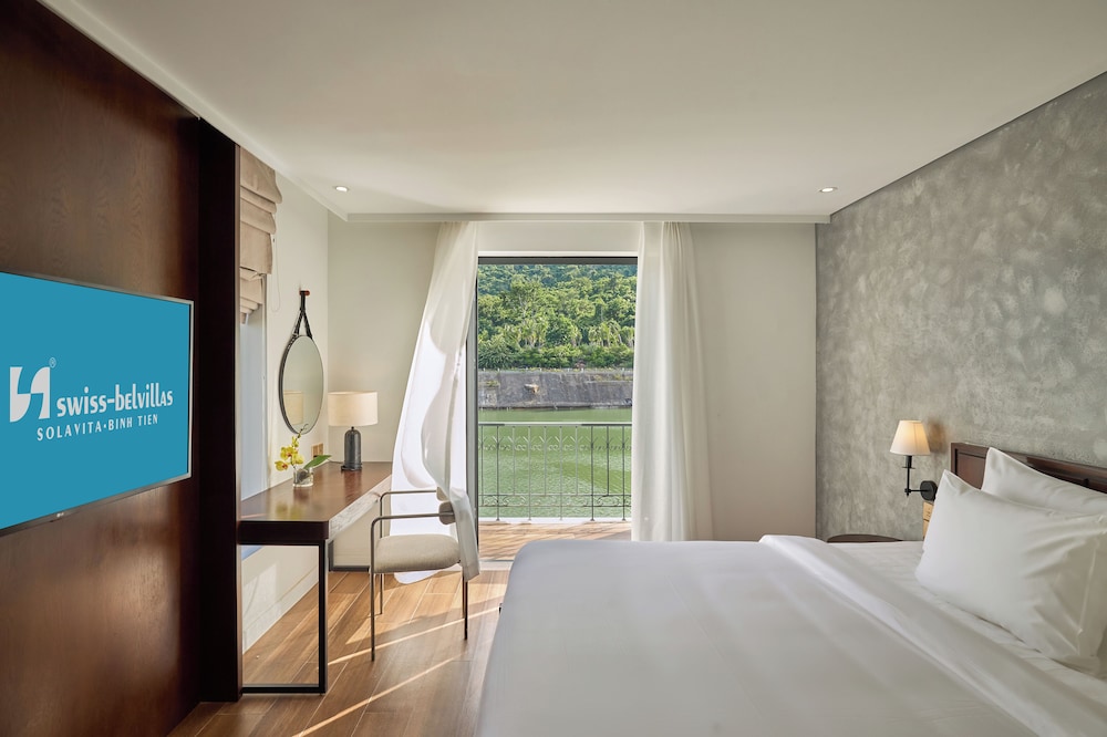 Em Thuận Bắc, Swiss-Belvillas Solavita Binh Tien ficará junto ao lago, a 15 minutos de carro de Praia de Bình Tiên e de Parque Nacional Nui Chua. Este resort de golfe está a 13,7 km (8,5 mi) de Baia de Cam Ranh e a 23,6 km (14,7 mi) de Museu de Cam Ranh. Os 46 quartos climatizados oferecem uma cozinha com um frigorífico e um micro-ondas, se quiser preparar os seus pratos favoritos. As unidades contam com uma varanda ou pátio interior. Ao final do dia, assista a uma seleção de canais por cabo no seu televisor LCD de 53 polegadas. A internet sem fios permite-lhe estar sempre contactável. As comodidades incluem ainda telefone, além de cofres e de secretárias. As distâncias são apresentadas à 0,1 milha e ao quilómetro mais próximo.