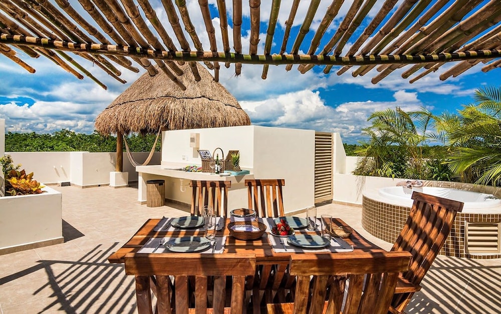 Com uma estadia Gorgeous Penthouse With Private Rooftop Jacuzzi em Tulum (Zamá), ficará a 4 minuto(s) de carro de Parque Nacional de Tulum e a 8 minuto(s) de Ruínas Maias de Tulum. Este apartamento está a 19,2 km (11,9 mi) de Parque Xel-Há e a 5 km (3,1 mi) de Playa de Tulum. Sinta-se em casa num dos 4 quartos. As distâncias são apresentadas à 0,1 milha e ao quilómetro mais próximo.
